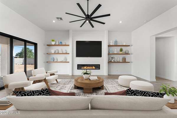 BRAND NEW Construction in an incredible location! NO HOA - Modern Farmhouse on 3.34 ACRE w/ Horse Privileges and STUNNING VIEWS! 4 Car Side Entry Garage, Guest Living w/ Separate Entry and FIREPLACE ACCENT WALL. Gourmet Kitchen with high-end Cabinets w/ 42'' uppers, White Quartz Countertops, WOLF appliances & Wood Plank tile Floors. Stunning Master Bathroom w/ Freestanding Soaking Tub, BEACH Entry Glass Shower & Beautiful Double Vanities. Exceptional Energy Efficient - boasting Spray Foam Insulation, Premium Trane AC units & High-end Windows. Superior Construction and Craftmanship: Premium Roofing System, Premium Synthetic Stucco & more! ESTIMATED COMPLETION in April/May 2026.