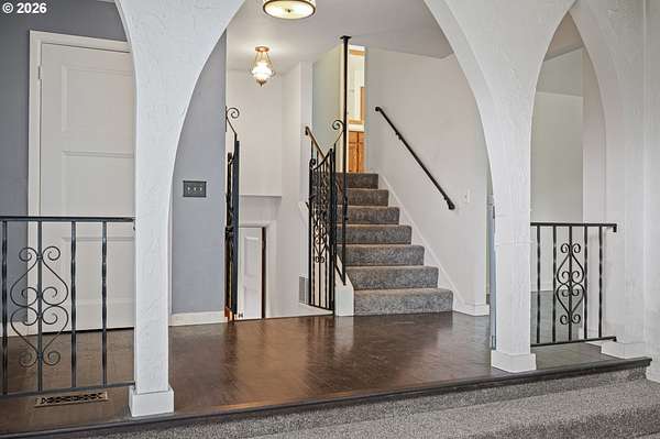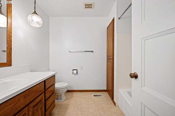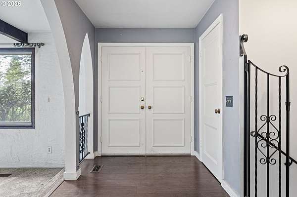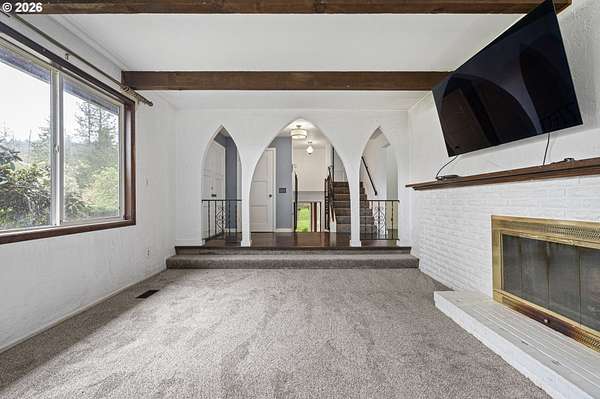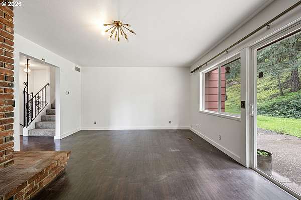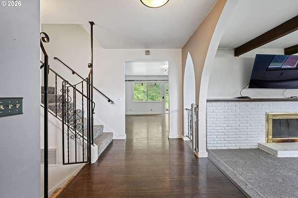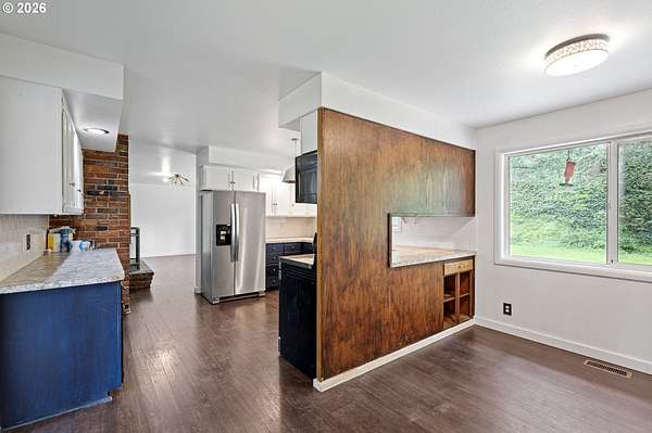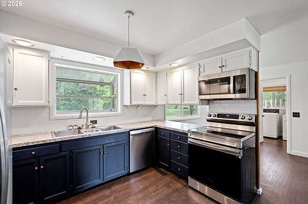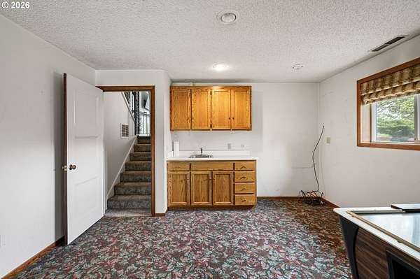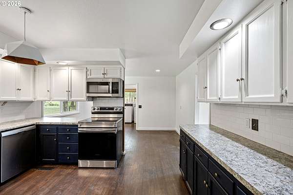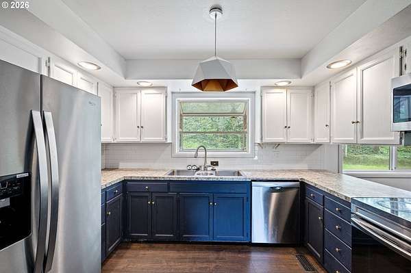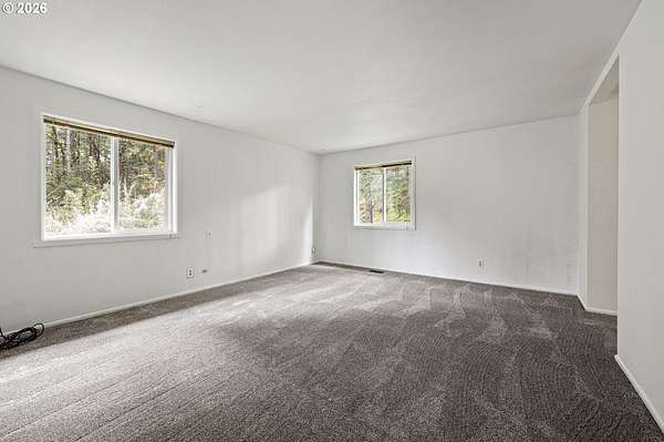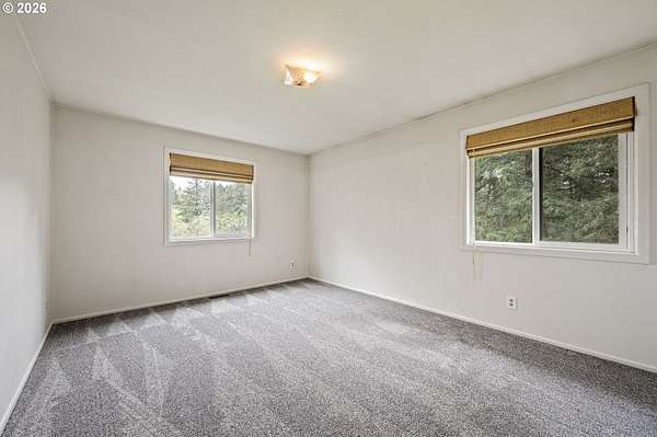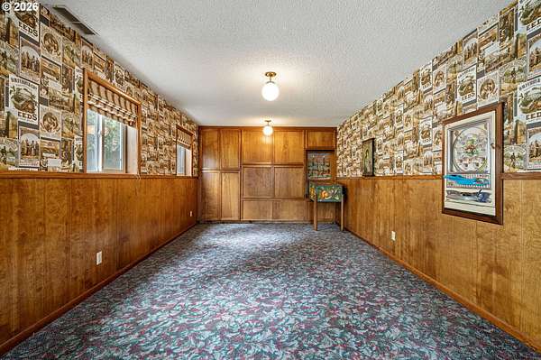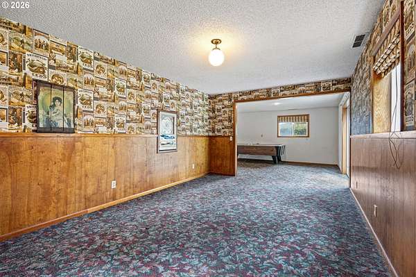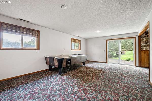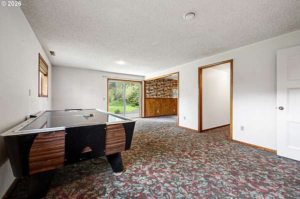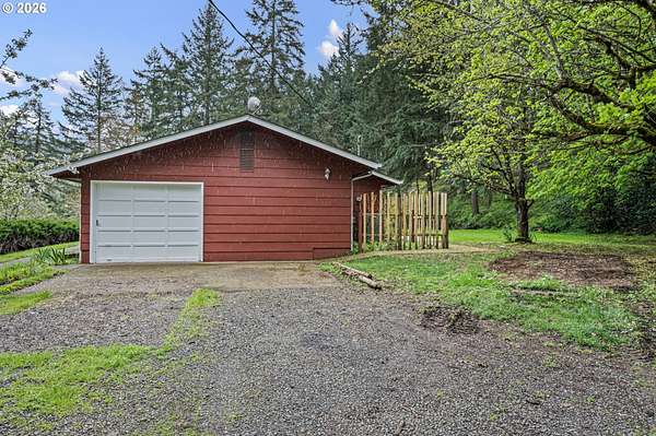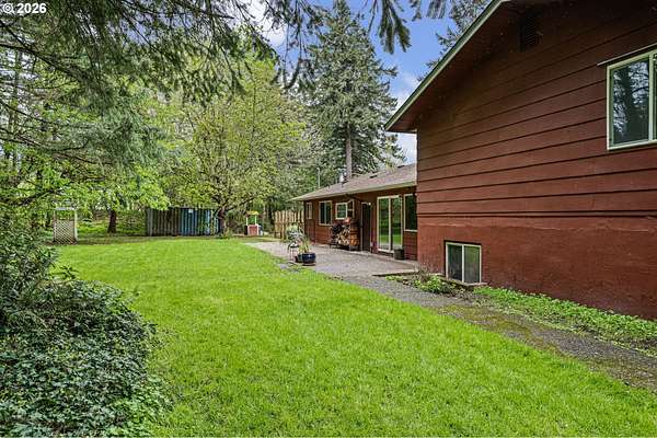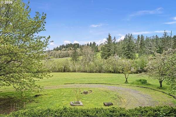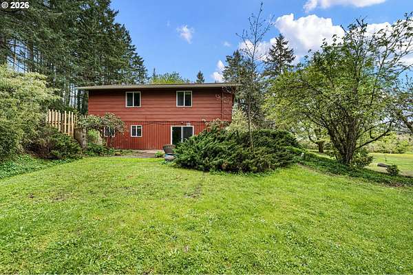 Spacious and well-maintained home situated on over 3.5 acres, offering the perfect blend of privacy and convenience-just minutes from shopping and located within the desirable 4J School District. This split-level residence features over 2,900 square feet of living space with 4 generously sized bedrooms and 3.5 bathrooms. The upper level includes three expansive bedrooms and two full bathrooms, providing comfortable living for family or guests. The lower level offers excellent flexibility with potential separate living quarters, featuring a huge bonus room w/ vintage built in pinball machine and games, a potential kitchenette area, bedroom, full bathroom, and private entry-ideal for multi-generational living or rental opportunity. Recent updates include fresh interior paint and new carpet with upgraded padding throughout. Major system improvements provide peace of mind, including a new HVAC system and heat pump (2021), and a new well pump, water filtration system, and casing (2024). Additional updates include a new refrigerator and recently serviced chimney (2026).The property is a standout with its usable acreage, featuring mature fruit trees including apple, pear, plum, and four varieties of cherry. An oversized garage, ample RV parking, and multiple areas suitable for pasture or potential livestock make this property ideal for those seeking space and versatility.