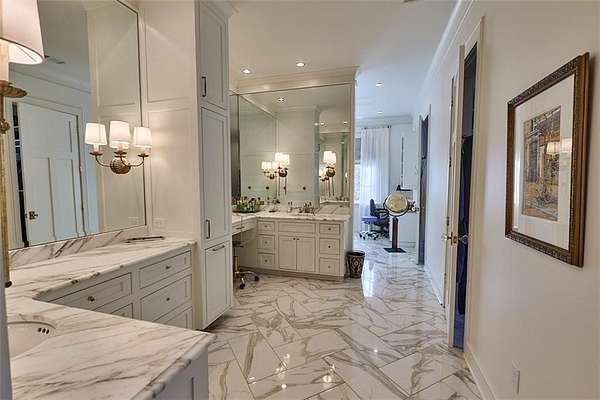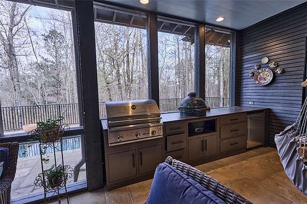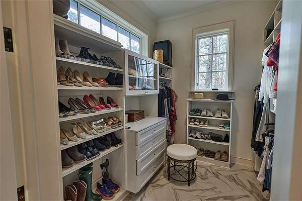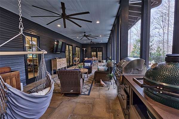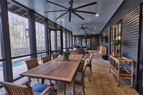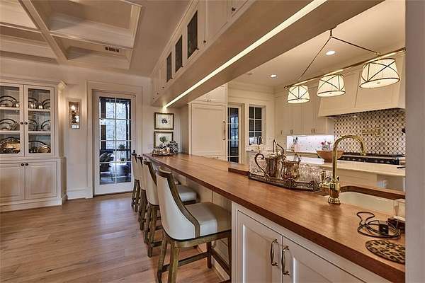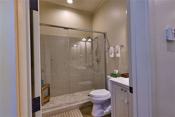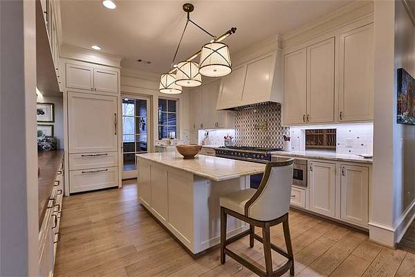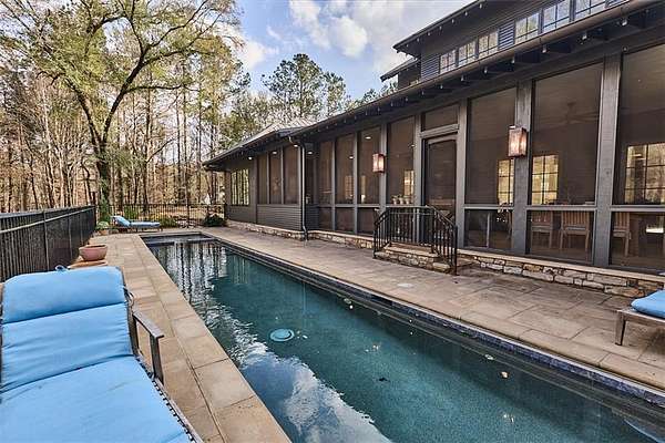 Absolutely Stunning! Every detail customized in this gorgeous home in sought after Dakota neighborhood. From the moment you pull in the drive, you know this is special! Main floor hosts a gorgeous great room with coffered ceilings, the dining room, kitchen and breakfast room are an entertainer's dream with cabinet front appliances, French range and marble countertops. This home has a scullery+additional storage room+food pantry = dream home! The office has built ins, there is an additional full bath, perfect for coming in from outdoors plus an en suite for guest. The primary bed/bath is amazing with abundant space, screened back porch entry, heated floors, his and her closets plus an exercise or office area, zero entry shower, soaker tub, plenty of vanity space, AND heated floors in this and every bathroom in this home. If walking up the stairs is a concern, take the elevator to the two matching en suites upstairs. The screened back porch spans the entirety of the entertaining space with a grill, egg and fridge. Beyond the porch is a beautiful lap pool (electric cover) and a beautiful private yard - a must see! Above the garage is a well appointed MIL suite with gracious storage. Notables include: bronze gutters, rain chains, exterior house painted 2026, gas lantern, metal roof, Trane HVAC, all custom closets, epoxy and insulated garages, Cypress and rock exterior, spray foam insulation, encapsulated crawlspace, marble and quartz countertops.