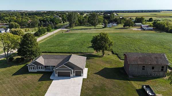 Wait no longer! BRAND NEW CONSTRUCTION HOME ON 2.94 ACRES! Welcome home to this stunning new build set on a peaceful lot. This thoughtfully designed 3 bedroom, 2.5 bathroom ranch offers modern living with timeless appeal. The open floor plan with hardwood floors features a spacious great room, stylish kitchen and a dining area and easy flow to outdoor spaces. The kitchen has a large island, shaker style cabinets, quartz counters, tile backsplash, all stainless appliances and an under counter beverage cooler. There is a curbless shower with a hand held shower wand in the primary suite, plus a walk in closet, also wider hallways are perfect for those with mobility concerns. The oversized 3 car garage provides for ample storage and parking, while the full deep pour unfinished basement offers endless possibilities for future finishing. The large first floor laundry area has a half bath and is conveniently located near the garage entrance. Enjoy morning coffee on the covered front porch, then relax or entertain on the covered back porch or large concrete patio overlooking your private acreage. A perfect blend of comfort, function and space-this home is ready to make your own. There is a vintage barn on the property that can be restored for many uses - let your imagination wander OR if dismantled the much desired barnwood could be sold for revenue. Also included is a machine shed that could be restored as well. The property is currently planted in beans to help keep taxes affordable but could be turned to grass if you so desire. Does this sound perfect? Don't wait, be in and settled all before the busy Holiday season is upon us.