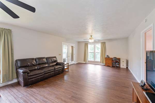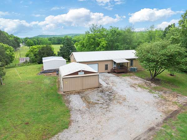 Privately located 3 BR 2 BA Country Home on 2.73 beautiful acres! Overlooking a picturesque rolling countryside, this neat and maintained 1421 sq ft home features new Luxury vinyl flooring, new paint inside & out, 6" insulation in walls, blown insulation in attic, whole house water filter & softener. A cozy country porch entry leads to the custom cabinetry kitchen w/built in pantry, plenty of counter space, gas range, dishwasher, refrigerator & reverse osmosis sink water filter. The open floor plan features a corner dining area and large living area. French doors lead to the pretty master BR with a private BA. Across the living area is the 2nd BR which adjoins a full bath also connecting back out to kitchen. Downstairs is the heated/cooled laundry area (which could be a neat bunk room or place for a murphy bed-perfect for extra guests), 3rd BR and the attached garage. Outdoors is a separate detached garage, 3 storage buildings & storm shelter. Property has 2 septic tanks with an area where a mobile home was once located-ideal for RV or another mobile home hookup. Fiber internet, well water, city gas. Less than 3 miles to the Tennessee River with all its offers in fishing, boating, skiing, kayaking ,or just floating! Located mins to the small TN River towns of Linden and Parsons, this property is located 1.5 hours to Nashville. This Peaceful Countryside Home awaits! Hurry on this one!