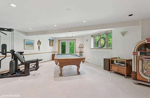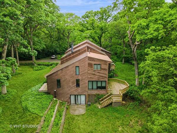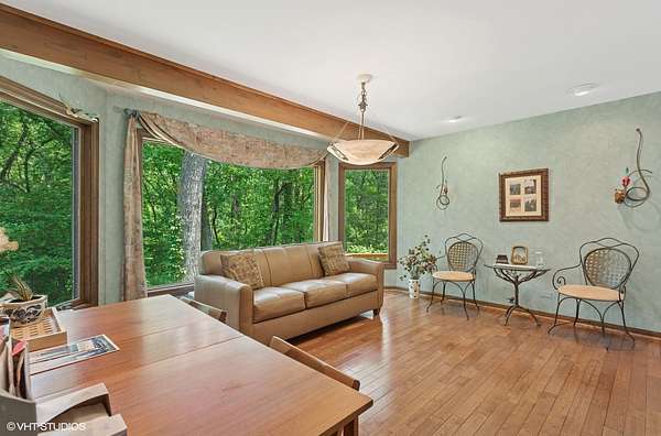Private 2.5 Acre Retreat. Tucked away on a scenic 2.5-acre wooded lot, this expansive custom-built home offers space, and privacy. With 5 bedrooms, 4 full bathrooms, and over 4,000 square feet of living space across three levels, there's room for everyone-and everything. The main floor is designed for gathering and entertaining, featuring a spacious living room, cozy family room with fireplace, large eat-in kitchen, and a four-season sunroom overlooking the property. A first-floor bedroom and full bath make a perfect guest suite or private office option. Upstairs, the oversized primary suite includes a private ensuite bath, while two additional bedrooms share a full hall bath. A laundry room and additional office/flex space complete the second floor. The walkout lower level adds even more living space with a full wet bar, recreation room, bedroom, and full bath-ideal for multi-generational living or entertaining. Step outside to take in the natural beauty from the back deck. A full-size barn that's perfect for car collectors, hobbyists, equestrian enthusiasts, or anyone in need of extra workspace. The solid construction and exceptional layout provide the perfect canvas to create your forever estate in a truly serene setting.