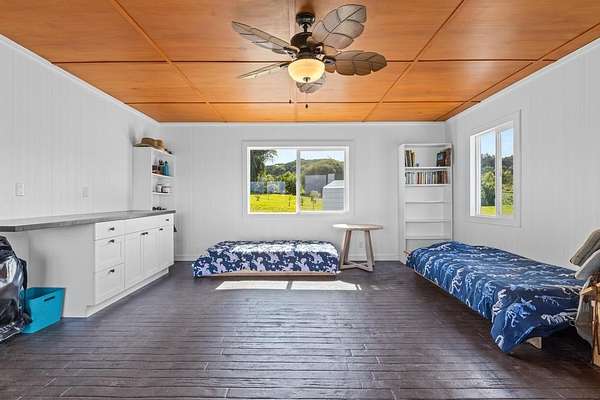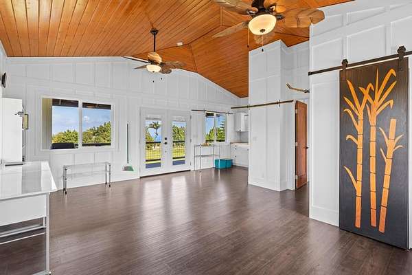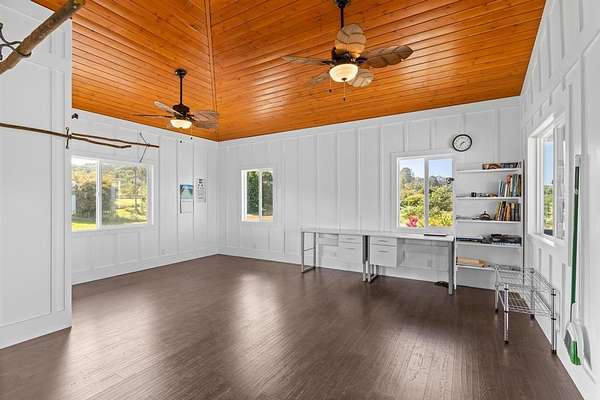 Off-Grid Living with Partial Ocean Views & Stream Located at 29-2584 Kaiwiki Homestead Rd, this 1-bedroom, 2-bathroom home offers off-grid living with a partial ocean view from the upper deck, and a year-round stream on the property. The home is fully fenced with a new gate providing security and privacy. Designed for sustainable living, the property features solar power, rainwater catchment, and a septic system. The open floor plan includes a functional kitchen, spacious living area, and large windows to maximize natural light and views. The covered lanai is perfect for outdoor living, overlooking the lush surroundings. The 10 acres of land and natural creek makes this an ideal property for the equestrian or animal lover. In addition to the beautiful 10ac., there's a variety of fruit trees on the property, including; Mango, Lemon, Tangerine, Orange, Papaya, Banna, Avocado, Guava and Lilikoi. A short drive from Hilo, this property combines privacy and convenience. If you're looking for a self-sufficient lifestyle in a stunning natural setting, this home is ready for you. *Take a look at the video of the property*