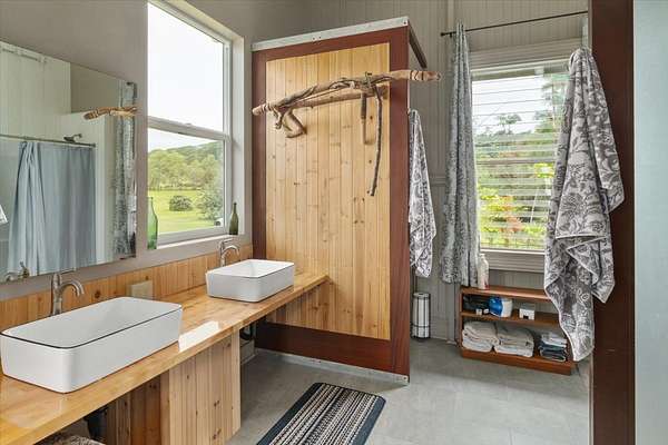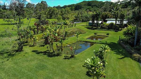Just 20 minutes north of Hilo lies a truly unique and breathtaking property in the heart of Hakalau. This nearly 7.5-acre off-grid sanctuary offers amazing ocean views, year-round stream frontage, abundant gardens, and a beautifully restored historic home - a rare blend of old Hawai'i charm and modern sustainability. The land is a testament to thoughtful stewardship, with an impressive array of fruit trees, vegetables, and herbs including citrus, 'ulu, liliko'i, avocado, banana, rosemary, kale, lettuce, and much more (list attached to addendum). Toward the rear of the property, you'll find five large tilapia ponds, teeming with fish and contributing to the property's self-sufficiency. Adding to the peaceful ambiance, the Ka'ahakini Stream flows year-round along the northern boundary, bringing with it the soothing sounds of nature. Also, a seasonal stream can be found when the rains are high, dancing through the lava tube in the middle of the property. At the heart of the property is a historic plantation-style home, originally built in 1916 and relocated from Haili Street in Hilo in 2009. Lovingly restored and maintained, the home features 11-foot ceilings that fill the space with light and breeze, enhancing its airy, open feel. Original architectural details, including vintage doors, have been preserved to honor the home's rich past. Below the main living area is a spacious covered area which includes storage, a workshop, laundry, parking, and even an outdoor shower - ideal after a day of tending the garden or exploring your private paradise. Additionally, there is a chicken coop, a pig pen and various paddocks for livestock. Whether you're looking for a serene retreat, a sustainable lifestyle, or a piece of Hawaiian history, this exceptional property delivers it all.