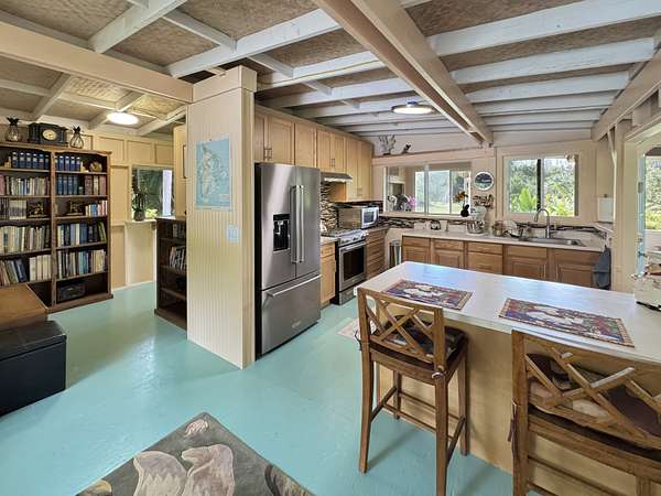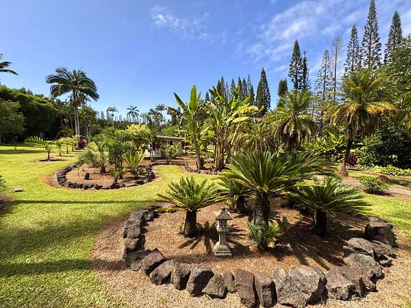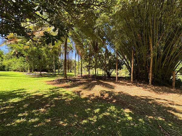 Tucked away in the peaceful countryside of Hakalau, this fully-fenced 10 acre park-like estate is bordered by island pines and brimming with an array of palms, mature bamboos, an abundance of tropical fruit trees, stone fruit and flowering plants. The land has been well maintained over time and offers privacy and usable acreage. The property is a haven for both plant lovers and those seeking a connection to the land with groves of bananas, citrus, cacao, mango, macadamia, lychee, apples, figs, avocado, lots of stone fruit, ivory cane-red flamed-foxtail-sago-rhapis palms, lemon guava and so much more. Completing the property is a charming off-grid cottage perfectly positioned to take in the soothing greenery and distant ocean views. The cottage is 1200 square feet on two levels with a sleeping area upstairs, a welcoming kitchen with a 5-burner stove and stainless steel Kitchenaid appliances. A dining nook, living room, a wrap-around enclosed lanai and a half bath. Downstairs is a guest bedroom, a bathroom plumbed for a future shower, a laundry area, a utility room, a small workshop and a private outdoor Balinese-style bathhouse. In addition, there is a 12x16 storage building, with finished interior, two windows and a locking door. Solar panels efficiently power the property with 9-330-watt panels, 9-230-watt panels, and 12-65-watt panels and 6 lithium ion batteries, installed in 2022. The property has two water storage tanks; 1-2500-gallon poly-tank and 14,000-gallon corrugated metal tank. Recent upgrades include upgraded plumbing and rewiring throughout most of the home, the work was performed by both a licensed plumber and licensed electrician. The current homeowner has also introduced many new plantings to the 10 acre property. The opposite side of the property offers potential for an additional building site, subject to buyer's due diligence. Walk-through video: