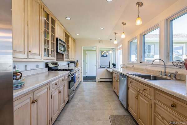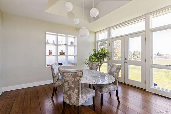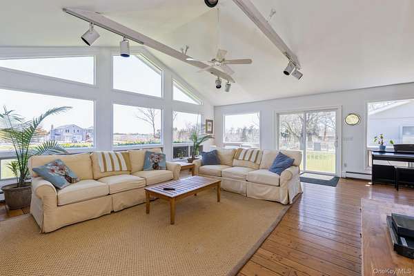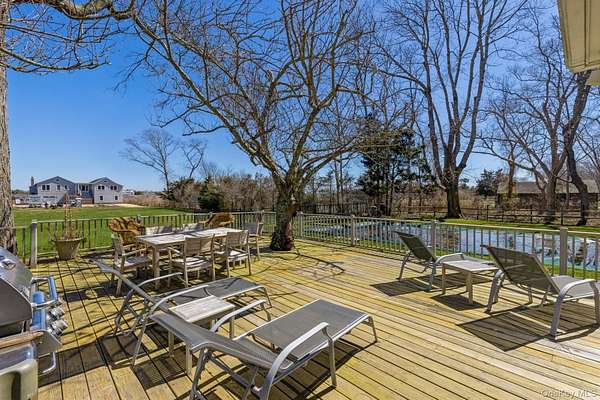 Mid-century ranch in Quiogue set on an oversized lot, featuring 4 bedrooms, 4 bathrooms, and a flexible office/den. The home offers two spacious living areas and a bright sunroom with abundant natural light. The backyard includes a heated pool and ample space for outdoor entertaining or relaxation. Conveniently located near town and beaches, this property is ideal for both summer living and year-round enjoyment.