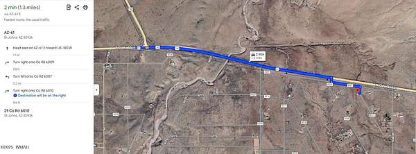 Est $128/mo1.36 acres on CR 6010 in St. Johns. Property has a wash Power Listing agent is a principal of the seller LLC and a licensed real estate broker in the state of Arizona. Property acquired through a tax lien foreclosure, so little is known about its history other than what could be obtained through public records and walking the property. Buyer to verify all material facts during inspection period.