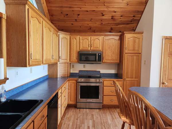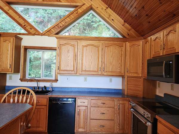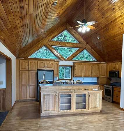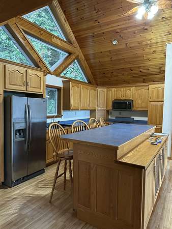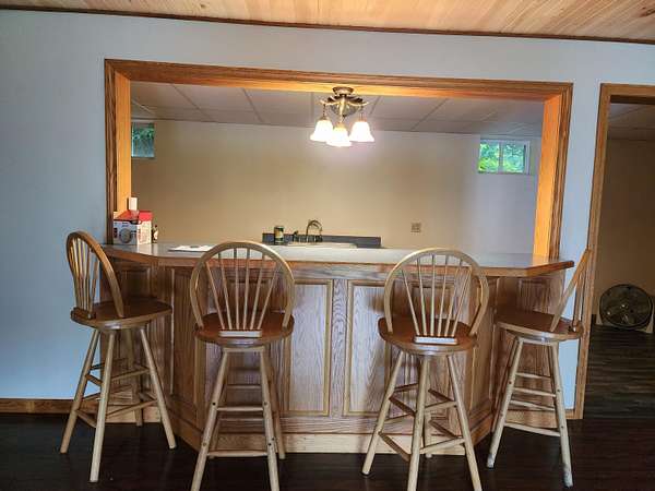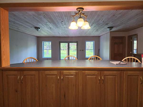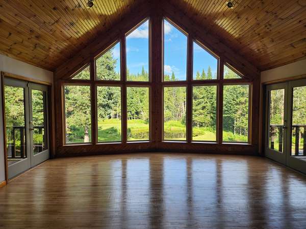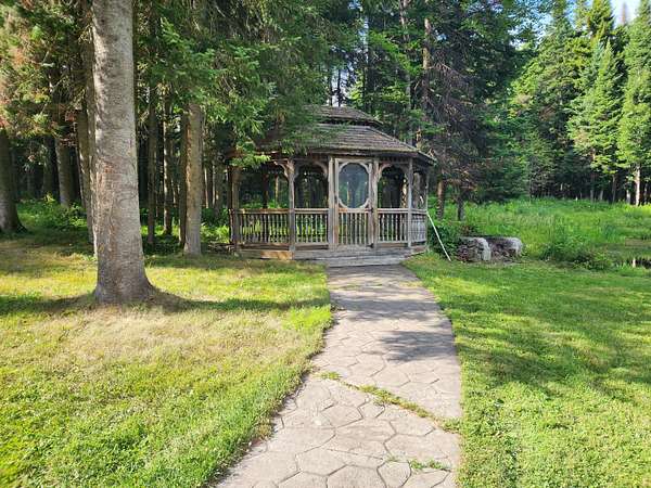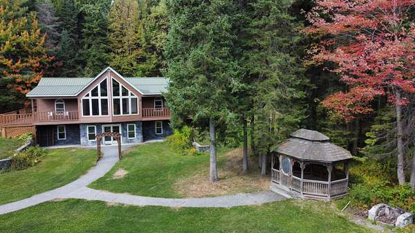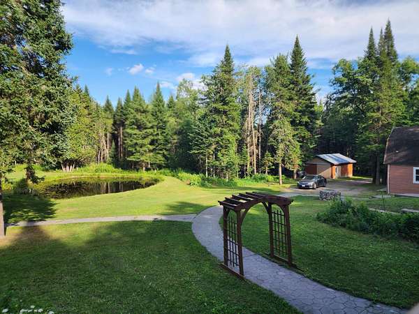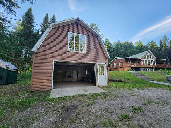 HERE IS YOUR CHANCE TO OWN A CHALET in the northern foothills of the Adirondack Park! Enjoy being 45 minutes from Lake Placid, the heart of the ADK, and access to an abundance of trails and waterways to hike, x-country ski, snowmobile, and paddle. This custom built home on 8 acres of land overlooks 2 ponds stocked with bullhead and trout and plenty of wildlife roaming the area, all to be enjoyed from the floor to ceiling double paned windows or full size deck. The main floor great room has cathedral ceilings done off with knotty pine, floor to ceiling windows, and beautiful hard wood floors. In the kitchen area you have a center island with lots of storage and matching custom made solid oak cabinets. Be sure and check out the pantry and all the pull-outs with it! Did I mention the windows? No ordinary framed windows in this home. The double paned insulated windows were also custom designed and done off with gorgeous trim. the main floor has a master bedroom with 2 closets, one walk-in, and ensuite with jetted tub, 2 vanities and a separate shower.. Main floor also has another bedroom and a smaller room that could be used as an office or sitting area. A lovely perk to this home is the on-ton hoist elevator installed in the kitchen that will take you to the basement area. No stairs to have to climb or carry things up and down! The basement area is a full sized living area consisting of a great room, large bedroom, full bathroom, laundry room with pull-out ironing board, utility room, and what the sellers called a root cellar that could be used as a large pantry or storage room. Zoned in-floor heat throughout the entire home allows for temperature control in the main rooms. Not only that, but you have your choice of either using propane heat or an outside wood boiler. Here is an honorable mention, the stamped concrete sidewalks can be heated through the wood boiler! No shoveling if youLi so choose! This beautiful home has so much to offer! Call for your showing now