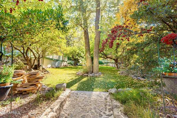 Parcel # 105-46-005S (land only ) included in this listing/sale. This listing is a child to parent listing MLS: 6942021. Expansive single family home placed directly in sky island paradise! Over 5 acres of fully mature trees, including mature fruit trees (apricot, plum, pear & pomegranate). Enjoy the large front covered patio, private balconies, running pond, low maintenance turfed backyard, fountain and private courtyards. The interior features a massive front living room with an impressive stone fireplace, vaulted ceilings with beautiful wood beams, and large windows to take in the breathtaking surroundings. Don't be surprised if the wildlife is easily in view! In addition there is a full kitchen with an attached dining room area. Ample storage, stainless steel appliances including a commercial size refrigerator, non-laminate countertops and room for a table that could seat 10 or more! Additionally on the first floor there is a bonus room area, laundry which features 2 stacked units, a half bath and 3 bedrooms that each feature their own en suite bathrooms. 2 of 3 lower level bedrooms also have private balconies overlooking the peaceful backyard. The second story offers 3 additional bedrooms each with their own bathrooms. This spacious home is nestled at the end of Ramsey Canyon Rd offering privacy, land to expand and build, ample parking, two electric charging stations, local wildlife, and sky islands temps with lush vegetation. Raw land has water access! You need to see this one!
