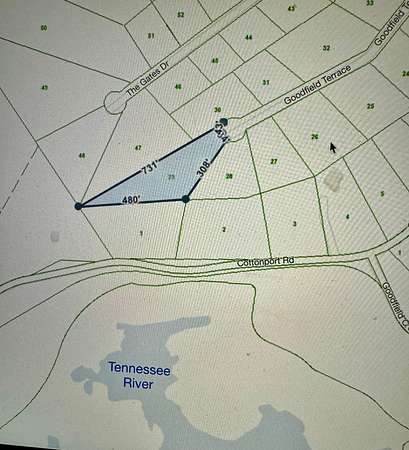 Nearly 2 acres in the beautiful Gates of the River subdivision. The view from your front porch is of rolling hills - from the back porch woods and wildlife. This is a must see if you want to build your home in a gated community full of wildlife with access to the TN River. Common area has a ramp, decking and pavilion. Fish, picnic or commune with nature. Water, Elec., H.S. internet and Gas - at the street. Sign on property.