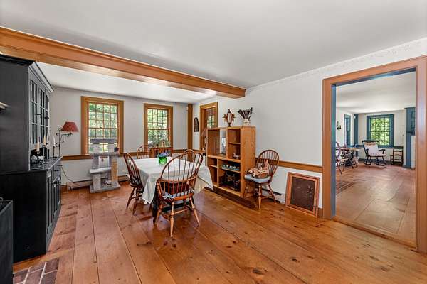Do you Love Antique Homes? Nestled on 5+ private acres in low-tax Moultonborough's sought-after Kona Farm neighborhood, this ANTIQUE REPRODUCTION Colonial is rich in timeless charm and handcrafted detail without the maintenance of an antique home. Built in 1989, and modeled after the Israel Arnold house in Rhode Island, it features 5 working Rumford fireplaces with cranes, wide pine floors, raised panel walls, wainscoting, and detailed crown molding. Two staircases, a walk-up attic, and hand-finished woodwork showcase true period craftsmanship. The spacious layout includes a keeping room (more commonly known as a family room), formal dining, living room, home office, craft room, 4 bedrooms, 2 baths & full walk-up attic. The kitchen is complete with seasonal view of Mt Washington. The detached carriage house functions as a 2-car garage with attached heated workshop which could be converted to an in-law space with town approval. Enjoy the park-like setting including 5 rolling acres and a pond! All this just a short ride to public beaches on Lake Winnipesaukee. Shown by Appointment Only.