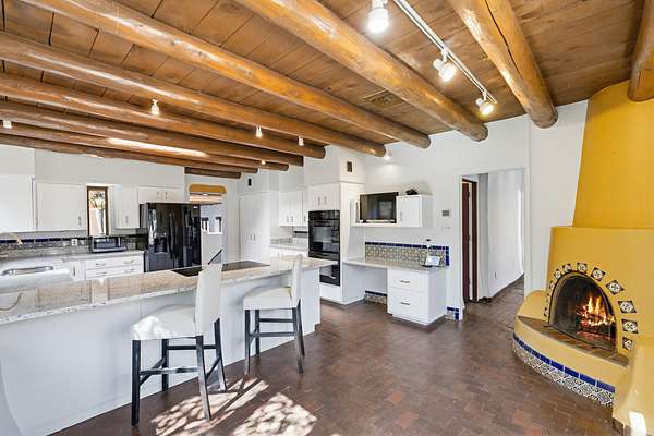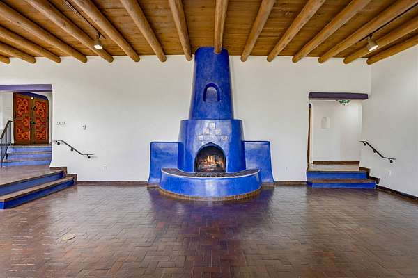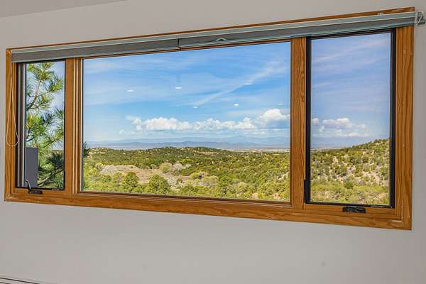 Your traditional Santa Fe Casa awaits! Nestled just minutes off of the historic Old Santa Fe Trail and only 15 minutes from the heart of downtown Santa Fe, this adobe estate captures the essence of classic Southwestern elegance and modern comfort. Set on 5-acres, the property offers total privacy and breathtaking panoramic vistas of the Jemez Mountains and Santa Fe city lights. The main residence features a grand living and entertaining space adorned with multiple cozy kiva fireplaces, high viga accented ceilings, brick floors, iron work, colorful floral wall motifs, and traditional craftsmanship. Many recent practical improvements to the roof, exterior, and systems have also been made. Four spacious bedrooms make this a comfortable retreat for full-time living or hosting of guests. Not to be missed is the spacious, upstairs artist's retreat with panoramic views - the perfect place to paint, work, write, and create! The primary suite is private and appointed with a large ensuite bathroom, access to the enclosed in-ground spa, patio access, and sweeping sightlines across the high desert landscape. The grounds are equally serene with water features and fountains, multiple garden beds, and private patio enclaves. A long western-facing, covered portal, spanning the length of the main living room is the perfect outdoor extension to the main home's grand indoor living. A detached 1BD-1BA guest house, with its own garage, offers privacy and comfort for visitors, family or invites the potential for rental generating income. Whether you're soaking in the golden hour light from one of the many outdoor living spaces or relaxing by one of the property's four fireplaces, this one-of-a-kind property offers an unparalleled canvas equipped with undeniable tranquility, vistas and convenience to Santa Fe's exquisite destinations.