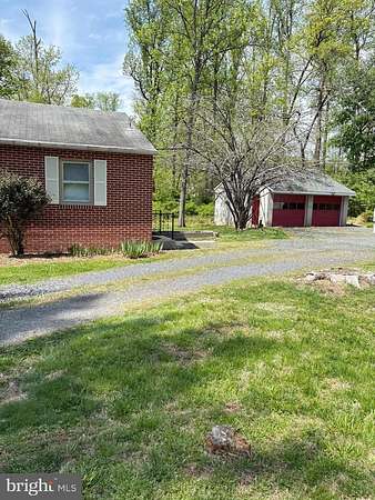 Well maintained brick Rancher with Oversized 2-car Detached Garage situated on 7.02 open and wooded acreage. Hardwood floors thruout the main level except for Kitchen and Bath. Eat-in Kitchen with linoleum floor, ceiling fan, double Stainless sink, electric range, refrigerator, countertop Microwave and lots of cabinets. Between the Kitchen and Living Room is the Dining Room for entertaining. The Living Room has a brick faced Wood Burning Fireplace (non-usable) and lots of windows for natural light. There are 2 large bedrooms: one with wall-to-wall closet; the other with 2 separate large closets. A large center hall Closet for coat storage. Completing this level is the tiled hall Bath with tub/shower combination, mirror above single sink and linen closet. The lower level is a large unfinished basement with plenty of storage on the Built-in Shelving and extra Refrigerator, if needed. Laundry is also in this area (hookup provided) and Utility Sink. Basement Walkout is to the rear yard just waiting for you to sit back, relax and enjoy. Detached is the oversized 2-Car Garage with man-door. Thruout the home there are lots of windows for natural light each with new window blinds. Central Air Conditioning for those warm summer days. Use of the HeatPump or Oil hot water baseboard heat (2 seperate heating systems; your preference) for those cold winter days and nights. Make your appointment today!