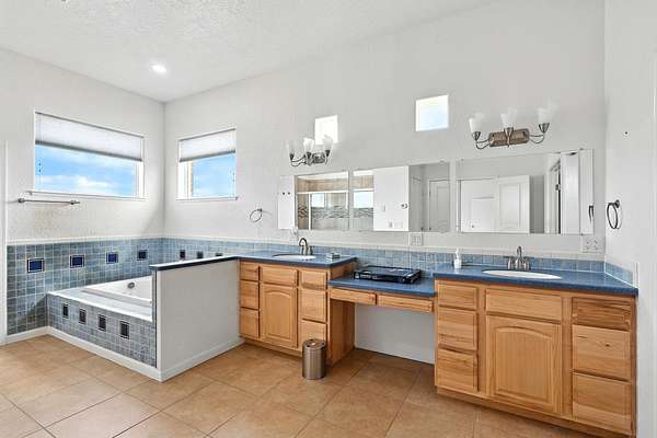 - Bathtub, Breakfast Bar, Ceiling Fans, Central Vacuum, Dual Sinks, Family Dining Room, Home Office, Jetted Tub, Living Dining Room, Main Level Primary, Pantry, Separate Shower, Skylights, Soaking Tub, Walk In Closets, Water Closets
