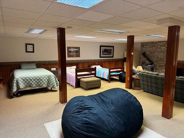 Welcome to 29 Pinkham Lane in Eagle Lake, ME. This stunning 3-bedroom, 2.5-bathroom home, boasting 3,890 sqft, offering the perfect retreat for you and your family. As you step inside, you are greeted by an inviting entrance area with a convenient half bath for guests. The spacious living room, featuring high cathedral ceilings and a fireplace with a propane insert (which can also be reverted to wood-burning), creates a warm and cozy atmosphere. Large windows provide breathtaking views of the landscaped gardens, enhancing the serene ambiance. You'll find a spacious dining area that seamlessly connects to the galley kitchen. The kitchen is a chef's delight, featuring granite countertops, a pantry, and top-of-the-line finishes. Adjacent to the kitchen and dining area is an exterior deck, perfect for outdoor dining and enjoying the scenic views of the surrounding woods. The first-floor master suite is a true sanctuary, complete with a bath featuring twin sinks, a soaking tub, a separate shower, and a private toilet room. Two additional bedrooms are located on the same floor, sharing a full bath with a large walk-in shower and seat. Accessibility is a priority, with 36+ inch doors, 48+ inch halls, and a roll-in shower. The lower level of the home offers even more space for relaxation and entertainment. The family room, equipped with a wood stove, is perfect for cozy gatherings. A laundry room on the first floor adds to the convenience of this thoughtfully designed home. Outside, the over-sized garage provides ample storage space, including a drain and room to store items upstairs with easy access from both the interior and exterior doors. The paved driveway and included generator ensure you're prepared for all seasons. An added bonus is the one-bedroom apartment attached to the house, ideal for in-laws or extra rental income. With 200' of waterfront on 2.2 acres, this sun-filled home is in turn-key condition, with no deferred maintenance. Contact us!