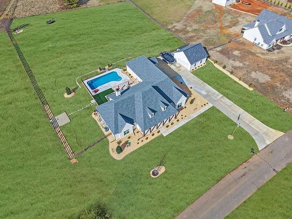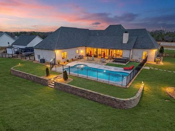 Upgraded Inside & Out! This exquisite home has been transformed in the last year, with upgrades including: inground pool with decking, full landscaping with sod, concrete & curbing, exterior & trim lighting, screened/enclosed patios, epoxy garage floors, new front door, and updated bathroom/laundry tiles. A 30 x 30 garage, retaining wall, refreshed interior paint, and so much more complete the package. This is just a glimpse of the many thoughtful enhancements that make this home move-in ready for luxury living. Welcome to this exceptional luxury residence offering nearly 4,000 square feet of refined living on two private acres. Thoughtfully designed and impeccably finished, this five-bedroom, four-and-a-half-bath estate blends timeless craftsmanship with modern sophistication. The main living areas showcase solid hardwood flooring, 12-foot ceilings, and an open, light-filled layout ideal for both everyday living and grand entertaining. The chef's kitchen is a true centerpiece with quartz countertops, extended-height cabinetry with a tasteful ceiling break, and a spacious walk-in pantry-perfect for hosting and culinary creativity. The primary living spaces flow seamlessly to a large screened-in porch with a fireplace, creating an inviting indoor-outdoor retreat for year-round enjoyment. Step outside to your own private oasis where the swimming pool is surrounded by professionally landscaped grounds and serene privacy. Bedrooms feature 10-foot ceilings, offering generous scale and comfort throughout. The laundry room is fully outfitted with custom cabinetry and a sink, adding both function and elegance. A five-car garage provides ample space for vehicles, storage, or recreational needs. This remarkable property offers luxury, space, and privacy-an extraordinary opportunity for the most discerning buyer.