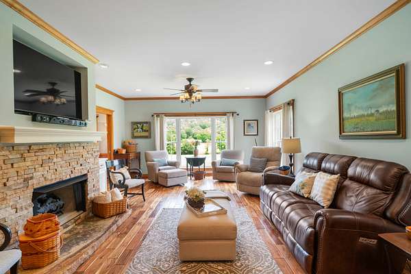 Featuring two homes, barns, orchard and an outdoor kitchen with premium Forno Bravo pizza oven! The main home is a 3965 sq. ft. home with a 24x24 two-car garage and a Generac generator able to power your house. This home features spacious rooms that create the perfect spot for the entire family to gather. One of two living rooms invites you to relax as you enter the main home. The home flows right into the first of two dining areas! The first dining room is located between the entry living room and the kitchen. This dining area is also serviced by a kitchenette equipped with custom hickory cabinets, sink, dishwasher and pantry ready to entertain smaller groups. There is also a half bath for your guests to use. The second dining room is located between the kitchen and the great room. The central location of the kitchen allows convenient service to both dining areas when the whole family gathers. Both dining rooms, entry living room and the great room create an open concept that allows you to interact with all your family and friends while enjoying the atmosphere of the two fireplaces in each of the living room/great room areas. The main kitchen features custom hickory wood cabinets, an island with seating, dishwasher, stove and commercial size refrigerator and freezer that will ensure you always have enough on hand for entertaining large or small gatherings. There is also access to the large back porch. The great room overlooks the back of the property with plenty of light coming from the large windows making a warm and relaxing area after a hectic day. The master suite is a dream come true! Located on the first floor, this expansive room features a walk-in closet nicely appointed with built ins for all your clothes. The master bath has dual sink vanity and large soaking tub. There are two additional bedrooms on the main floor each having an attached bath. Topping off the great elements on the first floor is an office, safe room with gun safe, laundry room and pantry/freezer room with mop sink. The second floor has three bedrooms, one full bath and a bonus room that will accommodate the entire family without having to fight for space. The outdoor areas of this home lack nothing! The large back porch has a built-in nook to put your grill. Ceiling fans on the porch will ensure your time there is comfortable during those summer cookouts. The outdoor kitchen is an ideal place for entertaining friends and families. This kitchen features sink, two griddle cook tops, two gas burners, one cook shack electric smoker and a built-in wood fired pizza oven! The Forno Bravo pizza oven allows you to make pizzas, roast chicken or bake desserts in minutes outside as the kids play in the yard!