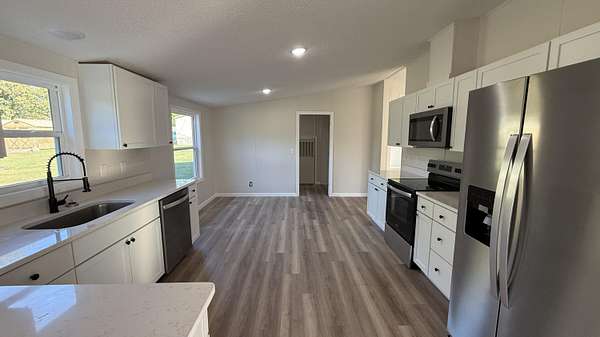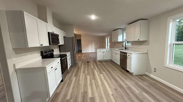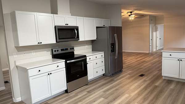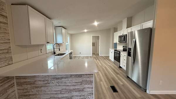 Est $1,308/moNewly remodeled manufactured home with a permanent foundation and a large 1.6 acre lot. Inside features granite countertops, stainless appliances, laminate floors throughout-no carpet, a walk-in shower in the primary bedroom, laundry room and separate dining. Outside is the lovely 1.6 acres, two new decks, and a storage building. Located minutes from Berea and Mt. Vernon!