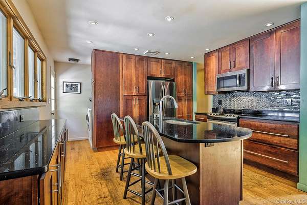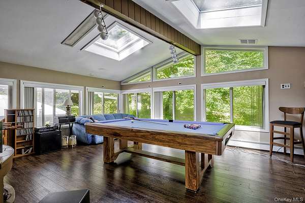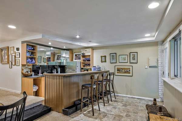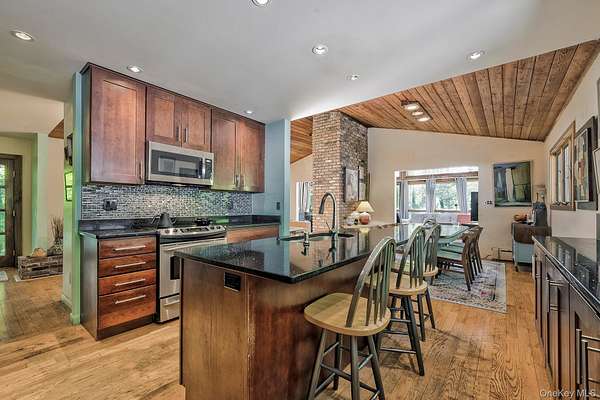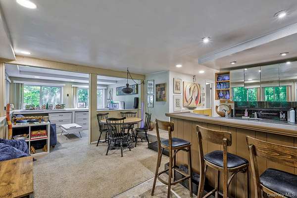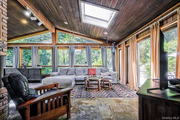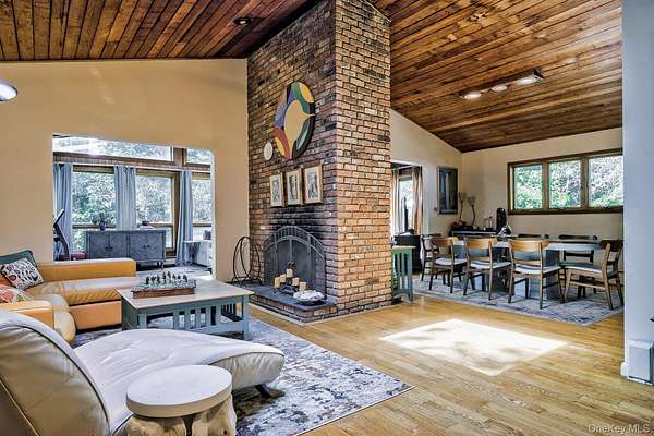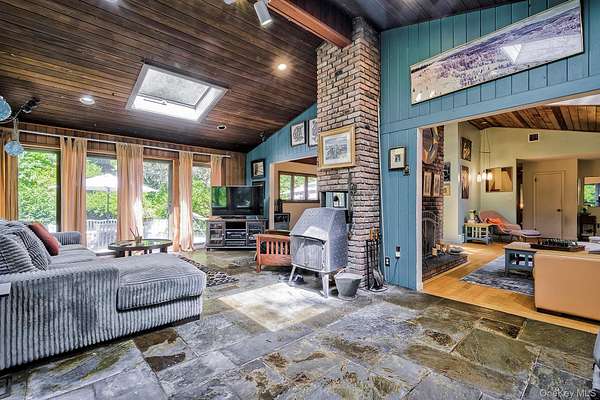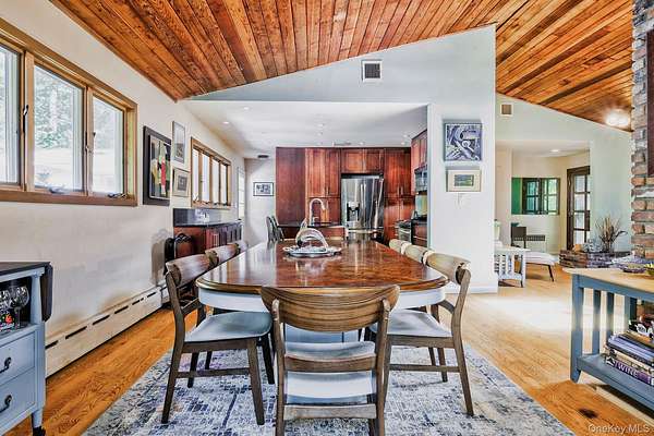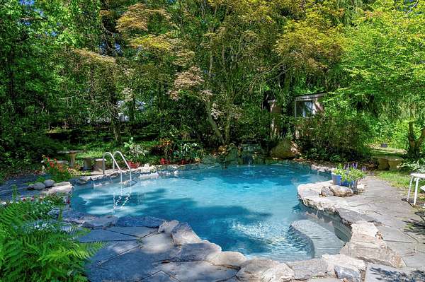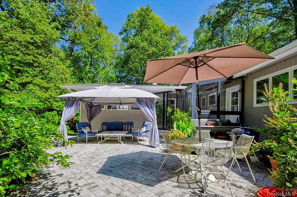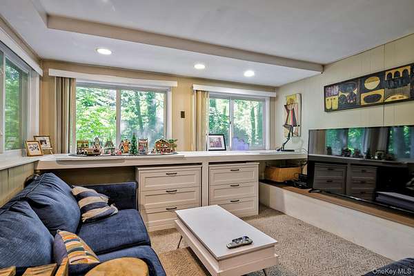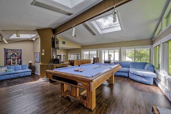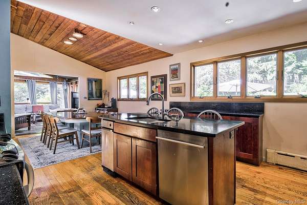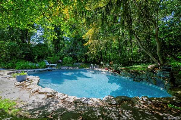 Welcome to this exceptional Expanded Ranch featuring 4-5 bedrooms and 4 bathrooms, nestled on 1.95 acres of serene beauty in Oyster Bay Cove's (Cove Neck section). A long private driveway can accommodate multiple vehicles, leading you to this remarkable residence, which includes a two-car attached garage with ample storage. Step inside to discover a stunning open floor plan accentuated by vaulted ceilings and walls of windows that showcase breathtaking views. The living room boasts hardwood floors and a cozy wood-burning fireplace, while the dining room also features hardwood flooring. The family room is adorned with beautiful natural stone floors and another fireplace, with additonal vaulted ceilings creating a warm and inviting atmosphere. The spacious, updated eat-in kitchen is equipped with granite countertops, making it ideal for entertaining. You'll find multiple living areas throughout the home, including a expansive second great room complete with vaulted ceilings, walls of windows, a full bath, and a separate outside entrance. For added convenience, there's a separate in-law suite or home office featuring its own entrance, full bath, and a summer kitchen/wet bar. The tranquil, secluded backyard is an entertainer's dream, featuring a gunite inground pool and plenty of seating areas on a beautiful paver patio for family gatherings and social events. As a bonus, the community offers a private beach with parking, perfect for kayaking, swimming, sunbathing, or simply enjoying the stunning sunrises and breathtaking views of cold spring harbor. This home also comes with deeded mooring boat rights. Located close to restaurants, shopping, town beaches, and the LIRR, this property is truly a perfect place to call home!