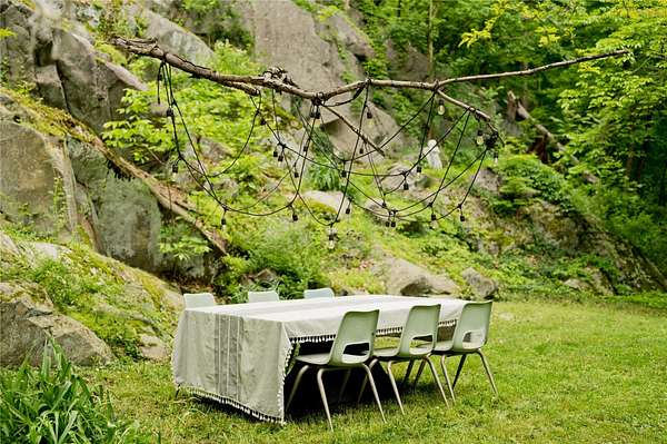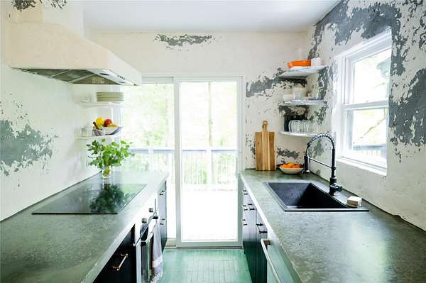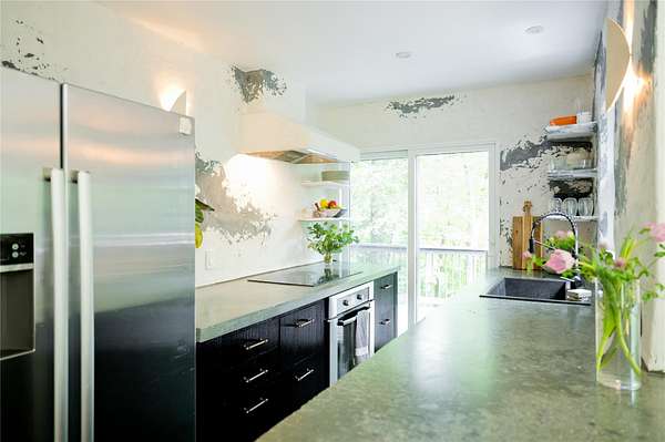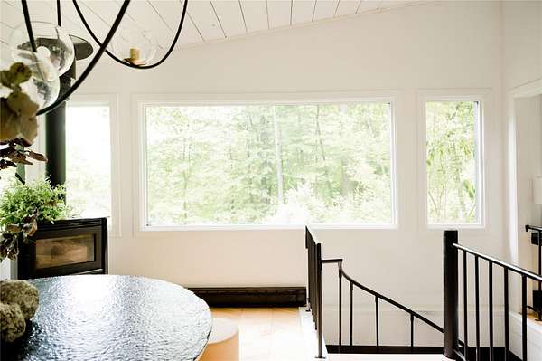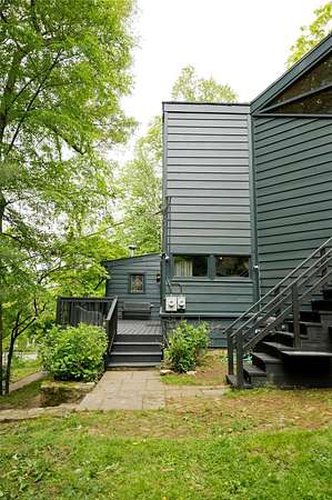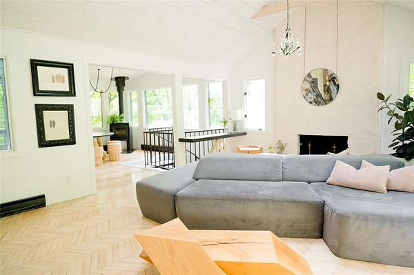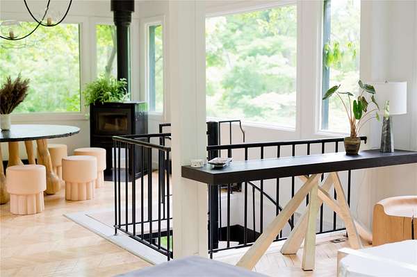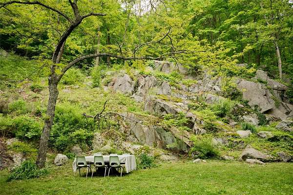 Perched at the edge of the 400-acre Granite Mountain Preserve, 29 Tyler Road is a masterfully reimagined modern treehouse that blends bold, expressive architecture with an unparalleled connection to nature. Originally designed by architects in the 1970s and now completely transformed by award-winning design studio Dean & Dahl-featured in Architectural Digest, Elle Decor, Vogue, and Hudson Valley Magazine-this glass-walled sanctuary spans 2.78 private wooded acres and feels like a retreat in the treetops. Inside, one-inch thick reclaimed maple chevron floors anchor a soaring interior centered by a sculptural plaster hearth, with floor-to-ceiling windows wrapping around an open living and dining area. The chef's kitchen is a work of art in itself, with polished concrete countertops, reeded custom cabinetry, and hand-pressed Cle tile finishes. The lofted primary suite floats above it all with panoramic views into the canopy and a newly renovated terrazzo rain shower bath. Additional spaces include a whimsical triple-bunk bedroom, a walk-out guest suite, and even a climate-controlled grow room for plant enthusiasts. Outside, moss-covered boulders and stone paths lead to a private treetop deck-ideal for morning coffee or evening cocktails under the stars. Trails begin right at your back door. Located just 2.7 miles from the Taconic Parkway and 10.8 miles from Metro-North, this is a one-of-a-kind escape where exceptional design meets wilderness-just an hour from Midtown Manhattan.