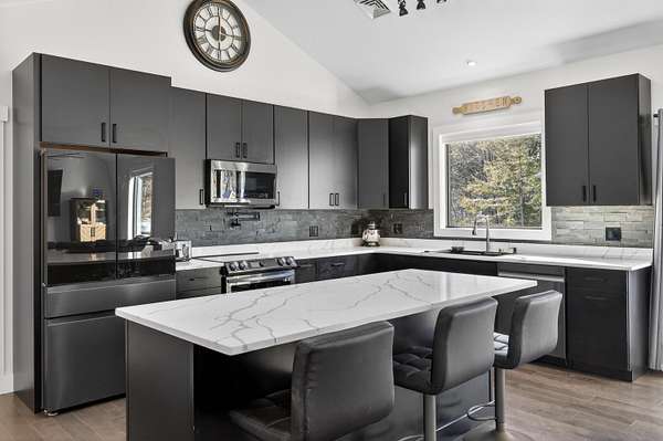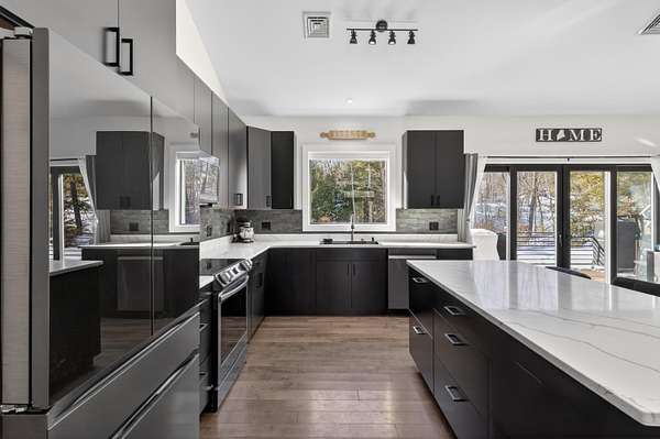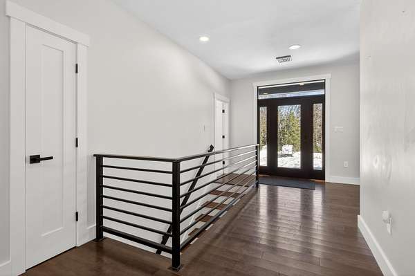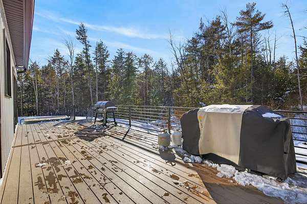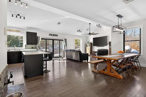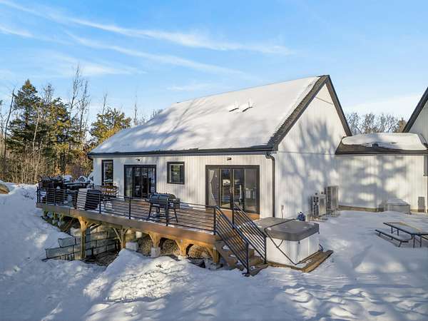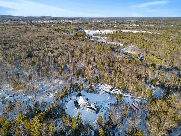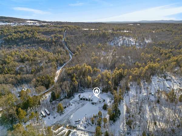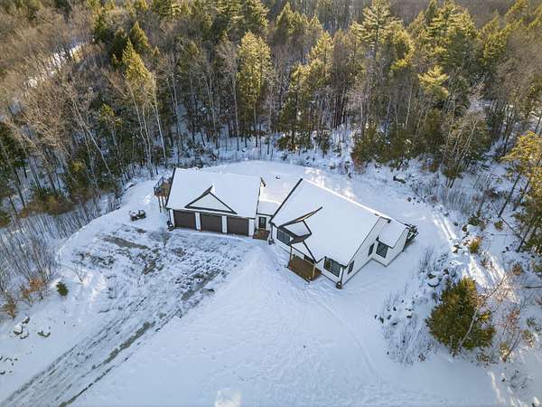 An exceptional opportunity to own a modern estate package featuring a completed primary residence, a partially constructed second home, and an income-producing solar field--spanning more than 23 acres in a desirable area of Sanford and North Berwick. Built in 2024 and offered for the first time, the primary home is an custom modern ranch set on 2.4 private acres. Designed for true one-floor living, it features vaulted ceilings, an open-concept layout, striking black cabinetry, quartz countertops, and a spacious island, ideal for entertaining. The living and dining areas flow seamlessly to the rear deck for easy indoor-outdoor living. The finished walk-out basement expands the living space with high-gloss epoxy floors creating an ideal recreation or entertainment area with a custom built in bar. A finished room currently used as a third bedroom provides flexible space for guests or office use. The home is powered by electricity and includes a whole-house generator with a buried propane tank. An oversized three-car garage with extra tall doors offers ample storage and vehicle space. Above the garage is a fully finished 1-bedroom ADU with private entrance, kitchen, bathroom, and its own laundry--ideal for extended family or rental potential. Also included is a 21.2-acre parcel with a partially constructed ICF home. Permits are secured, septic design completed, well lines installed, and plans for a 2-bedroom, 2.5-bath home are included. Approximately 7.5 acres are under a 25-year solar lease generating over $20,000 annually (lease available upon contract). The solar has it's own private access on the opposite side of the property, and will be completely out of view from the 2 existing homes. Zoning requires 2-acre lots, offering potential subdivision (buyer to verify). A rare opportunity combining lifestyle, income, and development potential in one offering.