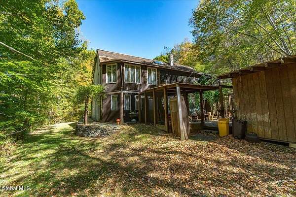 This spacious, secluded one-owner home in the Town of Salem, NY is an amazing property, which includes 4800+ SF house Custom home with 5+ bedrooms, 3 full bathrooms and over 78 Acres of wooded and field lands with a year-round stream. Lovingly and carefully designed and built by the owner's family. You'll find something beautiful in every room here, including a two-sided glass-doored wood furnace fireplace, a library, and an attached greenhouse. Three levels of finished living space (see 3D video tour). This is an extended family, home-sharing, work from home or artist's retreat paradise. Layout and land use holds so many options. Every Bedroom on the first two floors has an exterior access, and many of them have their own porch or balcony. Can be purchased furnished or vacant. 5 min from VT border and Battenkill access. Centrally located to Saratoga, Arlington, Manchester, state parks and lakes, and the mountain ski towns. This property is composed of two adjoining parcels on two deeds (uploaded) but both are being sold together. There is an 11+ Acre lot with the House, and a 68+ Acre Vacant Land lot adjoining it. Camden Creek runs from the Sandgate area and runs through both parcels and into the Battenkill. There are 2 deep water pools in the stream. It's just 10 Min from the Battenkill Fly Fishing Festival. 2024 taxes approx $13425. The 1/4 mile long winding driveway crosses the stream on your own bridge - and you are entering into another world. Check out the 3D Virtual Tour of the house (Click on the link and the cube in the upper right hand corner for the tour). A short video clip of the creek is also available by request. Cambridge Schools.