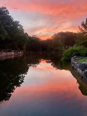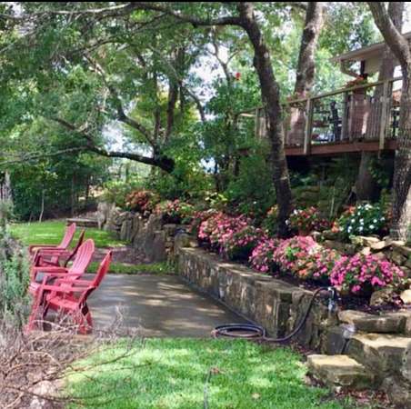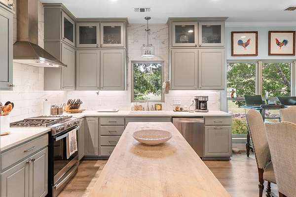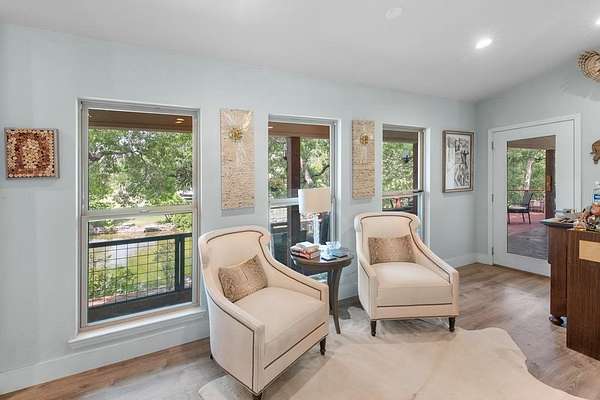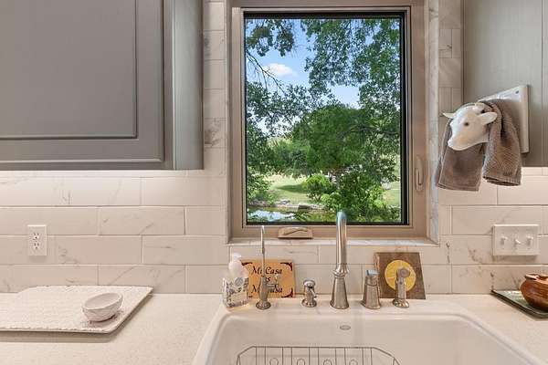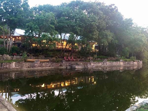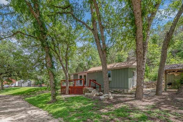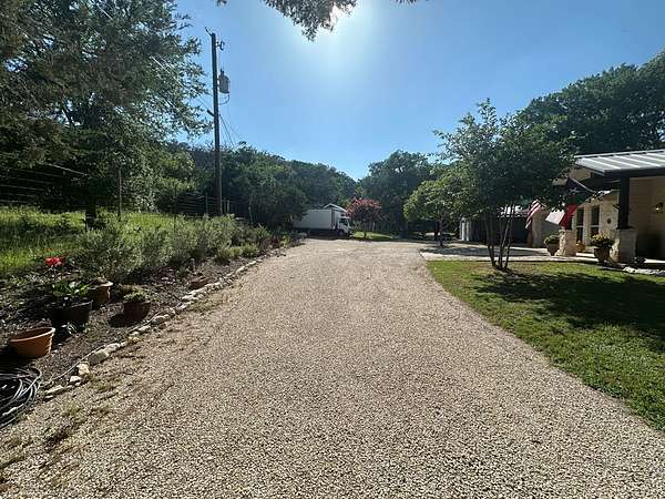 WELCOME TO YOUR HILL COUNTRY PARADISE! This Stunning home is perfectly perched above its own private spring-fed pond offering tranquility, natural beauty, & an unmatched Texas lifestyle. On 4.93 park-like acres, this 1 story 3/2.5 home combines timeless Hill Country charm with thoughtful modern updates. Step into the heart of the home-a chef's kitchen featuring a gas range, abundant cabinetry, natural light & a spacious eat-in dining area. The open floor plan flows seamlessly into the living area anchored by a WB fireplace for cozy evenings. A flex room provides versatile space for a home office, hobby room, or guest area. The primary suite is a private retreat, offering an updated bath with dual vanities, walk-in shower, soaking tub, w/in closet, direct access to the deep covered back porch & sparkling heated swimming pool, perfect for indoor-outdoor living & entertaining. Outdoors, enjoy ample living space mature trees & the serenity of abundant wildlife & nature. Fish, kayak, or canoe in your own pond. 2/1 guest house with income producing potential (current rental income: $21,600 annual) Other features include large utility, storage building, green house, large garage & carport