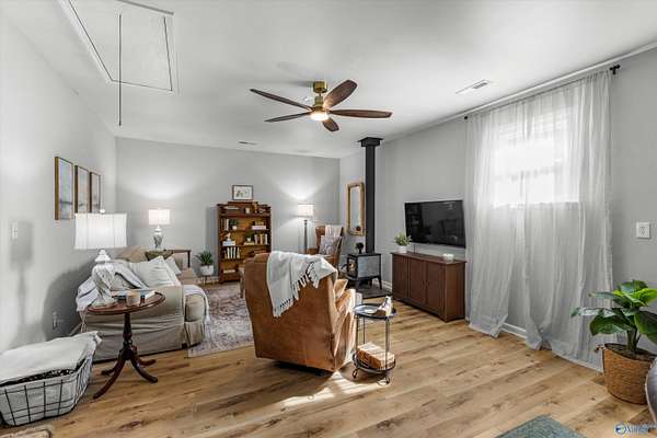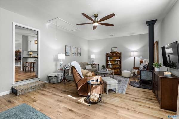 Land and Location!! Nestled on 2+ peaceful, tree-filled acres, this charming ranch home offers the best of country living with city convenience. Enjoy serene mornings on the screened back patio and fresh eggs from your own chickens. Enter to be surprised how spacious this 2 BDR/2 BTH home feels. It enthralls a highly flexible layout with a spacious Living or Bonus area along with beautiful LVP flooring & no carpet! Upscale baths complete this adorable ensemble. Recent updates include a renovated master shower, asphalt driveway, 10x20 shed, 20x21 carport, whole house gutters, Hearthstone wood-burning stove and more!. All this and just under 10 minutes to I-565, RSA, Mid-City, & Bridge Street.