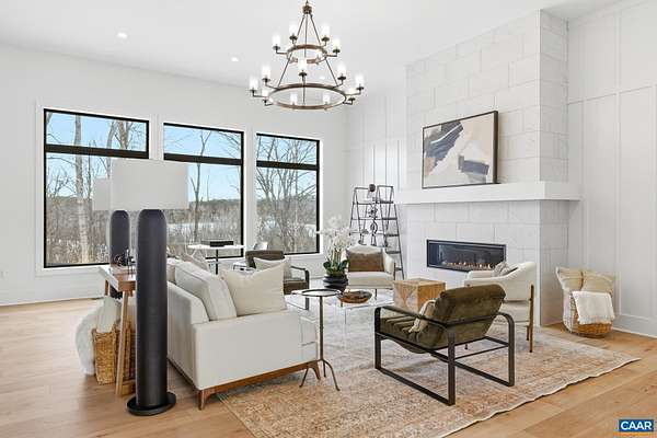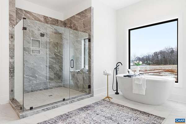 Brand new Schumacher Homes Charleston III model offered on over 10 picture acres with breathtaking MOUNTAIN VIEW. Architecturally stunning main-level living home from soaring 12' ceilings to curated designer fixtures, no detail has been overlooked. A welcoming foyer opens to an expansive open-concept living and dining area, anchored by a dramatic Great Room with gas fireplace and a wall of windows. Impressive chef's kitchen with gas cooking, stainless appliances, stone countertops, and a show-stopping "messy kitchen" featuring a second refrigerator, sink, dishwasher, and a full wall of pantry shelving--perfect for entertaining and effortless organization. The main-level owner's suite is a true retreat with a spa-like bath, oversized glass-enclosed shower, dual vanities, and a jaw-dropping two-story walk-in closet with custom organizers, center islands, and glass cabinetry. Three additional bedrooms and two baths including a private ensuite. A massive unfinished basement could be finished by the builder if desired - big enough to accommodate an additional bedroom, full bath, home theater, rec room and game space plus storage. Enjoy outdoor living on the covered rear porch or patio, surrounded by peaceful mountain scenery.