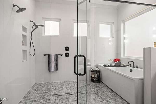 - Bathtub/Shower Combination, Built-In Features, Ceiling Fan(s), Crown Molding, Eat-In Kitchen, Entrance Foyer, High Ceilings, In-Law Floorplan, Kitchen Island, Pantry, Primary Downstairs, Quartz Counters, Separate Shower, Shower Only, Walk-In Closet(s), Walk-In Shower, Water Closet, Wet Bar