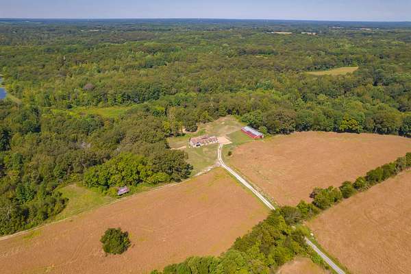 Unique opportunity to own a lot of land in West TN! This 234-acre property is being offered for sale for the first time in 28 years and has had only four owners throughout its history. The original home was constructed in 1827 in a simple Georgian style, using bricks made from clay found on the property. The property also features a 17-stall equestrian barn and a 17-acre spring-fed pond. The initial two-story structure measured 19 feet by 33 feet with 18-inch-thick walls, which form the core of the present home.