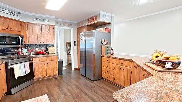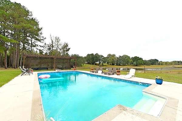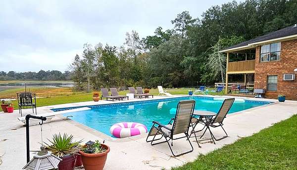 Designed for entertaining and everyday comfort, this stunning brick home sits on 2.34 acres just outside of Bainbridge and offers a rare combination of space, privacy, and year-round water views. Overlooking a peaceful pond beside the gorgeous pine and oak trees, this home is surrounded by inviting outdoor living spaces -- including multiple decks, patios, a sparkling in-ground pool, and a pergola -- this home was built for gatherings and relaxation. Inside, you'll find two primary suites on the main floor, four full baths, and a spacious, light-filled layout perfect for family or guests. The main level features a large eat-in kitchen, a cozy brick fireplace, and generous storage throughout. The finished walk-out basement expands your options even further -- complete with a full kitchen, bath, and open living area ideal for entertaining, a guest suite, or a home theater. Outdoors, a new 40x60 pole barn and separate storage building, and fenced in area provide incredible versatility. The pole barn even includes a partially finished living or work area, offering endless potential for hobbies, a studio, or home office. With thoughtful updates, and space to spread out both inside and outside, this property delivers the perfect blend of comfort, functionality, and lifestyle. Welcome home to your private retreat.