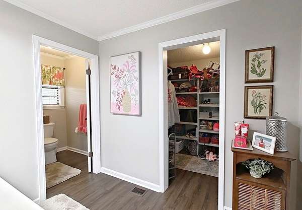 - Built-In Bookcases, Laundry Room, Light & Airy, Main Level Master Suite, Master Bedroom Walk-In Closet, Master Suite, Sink, Wainscotting, Walk-In Closets