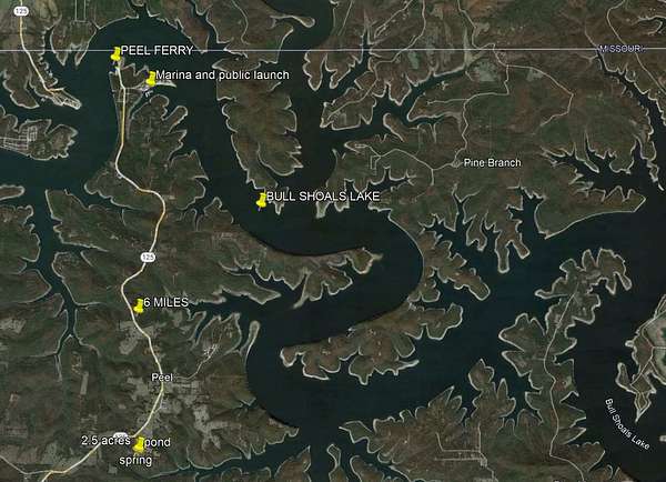 This wooden tract of land near Bull Shoals Lake has a spring that feeds an old pond. Land is unrestricted so you can build a house or put in an RV shelter. It is located on a county road with a little over 200 feet of frontage on the road. Electricity is at SW corner of property. The property is approximately 6 miles from a marina and public boat launch and from the free ferry at Peel AR that will take you over into Missouri.