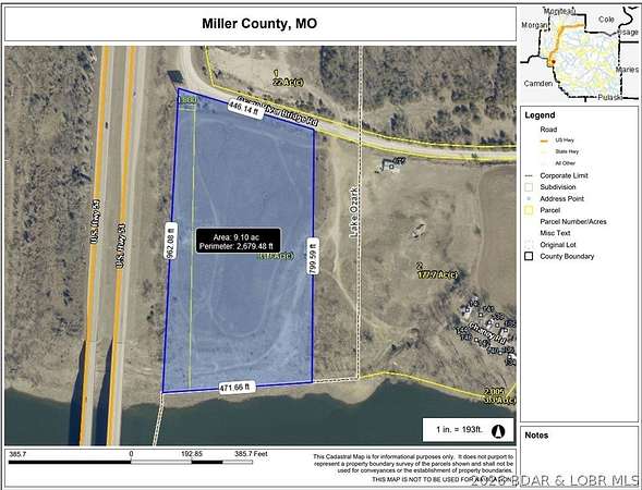 Imagine owning the FIRST thing visitors see when they arrive and the LAST thing they see when they leave; this is that property. Sitting boldly along Hwy 54 with a jaw-dropping 791 feet of highway frontage AND 470 feet of river frontage! This 9.09-acre powerhouse commands the attention of 20,000+ vehicles every single day. Already rezoned C-2, surveyed and discussion with Lake Ozark to get water and sewer to the property. All that's missing is your vision. Whether you're dreaming of retail, hospitality, multi-family, mixed-use or something bold and never-before-seen at the Lake, this parcel was made for it. Flat topography and usable acreage means you can build whatever you want. And the timing? Couldn't be better. Lake of the Ozarks is exploding with major developments and momentum isn't slowing down. Get in while the Lake is rising or watch someone else capitalize on the opportunity. Less than 10 minutes from Eldon, 15 minutes from Camdenton & seconds from Osage Beach. Under 2.5 hours from St. Louis & under 3 hours from Kansas City. Prime location. Unmatched visibility. Ready to build. This isn't just land, it's a launching pad!