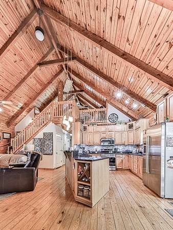Est $3,115/moBeautiful log constructed 4/3 home on 4.99 acres sitting on top of the ridge. Updated kitchen and bathroom on main floor, large dining room area off kitchen, wood flooring on main floors, hot tub on rear deck area, beautifully fenced yard for kids and pets and concrete driveway. There is a new full kitchen in basement so it can be used as an in-law suite or long term family stay while keeping your privacy. Covered parking area next to large shed with power. This home has everything you need to be confortable and happy for years to come.