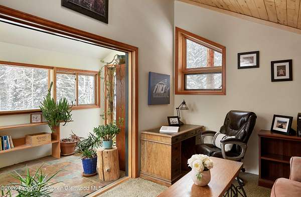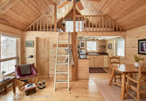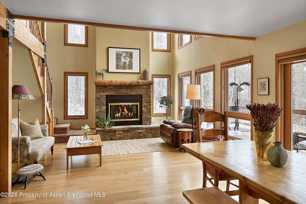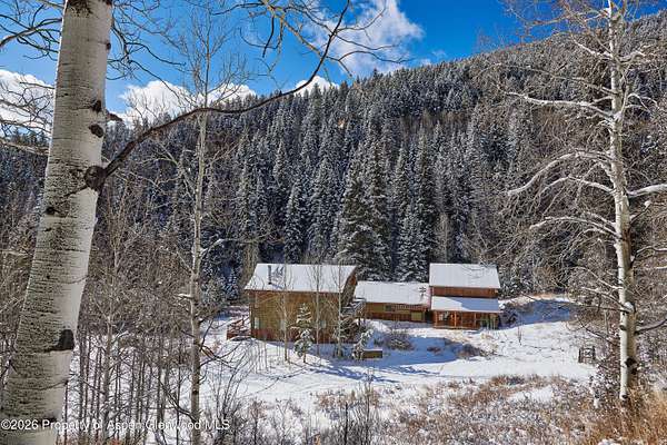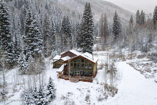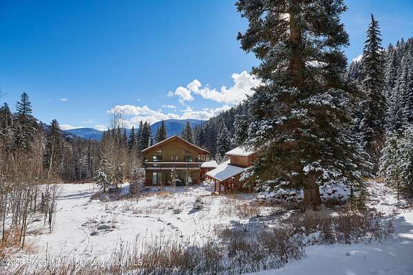 Nestled near the beginning of Ruedi Creek Road, this family retreat on 35 acres of woodland, meadows, wildflowers and wildlife has a creek running through it. There's plenty of room to roam, fish, hike, cross-country ski, snowmobile, or just sit by the creek. What's more, the boat launch area at Ruedi Reservoir is two minutes away. With a main house, a 3-story remodeled cabin on the creek, plus a guest cabin, there is plenty of room to accommodate the whole crew. The outdoor living space is abundant! You've found it - a truly authentic mountain compound for creating life-long memories. THE MAIN HOUSE - The heart of the retreat. Filled with light and mountain charm, the inviting main house is designed for gathering. A stone fireplace with log mantle is the centerpiece of the open main living/dining area that opens to a wrap-around deck that looks out to a field of wildflowers. Walls of windows stretch to pine cathedral ceilings and a gas stove in the dining area adds extra coziness. The light, bright, and roomy office loft that looks out to the surrounding evergreen forest is sure to inspire. All three bedrooms feature sliding glass doors that open to a deck or balcony for taking in the natural surroundings. An oversized 2-car garage, plus an agricultural building/woodshop are adjacent to the main house. And, perhaps best of all, there's a large stand-alone patio surrounded by nature that's perfect for entertaining. GUEST CABIN - Steeped in history, yet updated for today. An original Ruedi cabin from 1941, this delightful guest cabin tucked in the woods across the meadow from the main house has been pleasantly updated with all the comforts of home. There's a small kitchen, a sunny sitting and dining area with a skylight, plus a bath with a shower. A gas stove will keep guests cozy. The windowed loft sleeps two or could easily accommodate three kids. Guests can take a seat on the front porch with their morning coffee and watch the passing wildlife. THREE-STORY REMODELED CABIN - Set on the creek and lives like home Set along the creek, this second original Ruedi cabin has been ingeniously expanded to three levels that are all connected by a spiral staircase. Each level has an outdoor living space via a wrap-around patio or deck. Guests will fall asleep to the sounds of the rushing creek in the bedroom on the lower level with adjacent full bath. A stone patio that accesses a path to the creek is ideal for bird watching. The main living area on the second level features an updated kitchen with granite countertops, handsome cabinetry and stainless-steel appliances, plus a living and dining area overlooking the trees and the creek. A propane stove in the corner provides warmth. There's a half bath on this level. Tucked away in the loft is a cozy office/den with a skylight. With outdoor access on three levels, this cabin feels like a treehouse but better! Garage is detached, heated and has the laundry room for the compound. There is also a large agricultural building next to the garage that is used as a wood shop and storage.