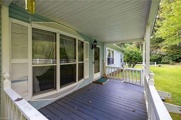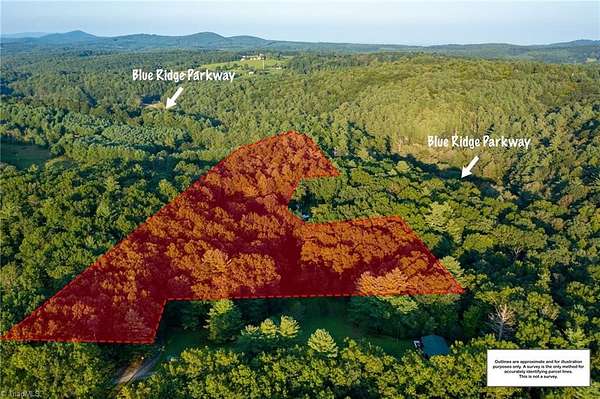Charming well maintained home with 6+ acres. This parcel borders land on the Blue Ridge Parkway. An open floor plan with 3 BR and 2 full BA. Kitchen is adjacent to a sitting area, dining area and living area. Bedrooms are conveniently located in the rear of the home. The primary BR offers a large ensuite bath and each bedroom has a good sized closet. Cabinetry and countertops are in good shape and home has been lovingly maintained. There is a front and side porch. Side porch is enclosed. Outside beckons with a shady yard and wooded area. There is a large outbuilding with room to park a car or maybe 2 depending upon the size of the car. There is also a homemade smoker for your culinary adventures. Land bordering the Parkway is a rare find. Come check this out today. Whether you are looking for a permanent home or a get away this is a sweet spot!