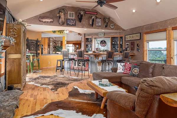 Est $5,253/moCome and see this beautiful custom built home in the Texas Hill Country on 8.56 acres. Home has many amenities including wet bar, and man cave. Very open living space with nice views, large living room and master bed and bath. Property also has a loft. Come relax with your cup of coffee and watch the sun rise in the morning. Has a deck right off of the master bedroom and the master bath has a jetted tub. Has lots of storage space and a huge walk in closet in the master bathroom.