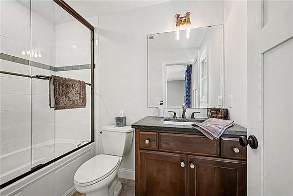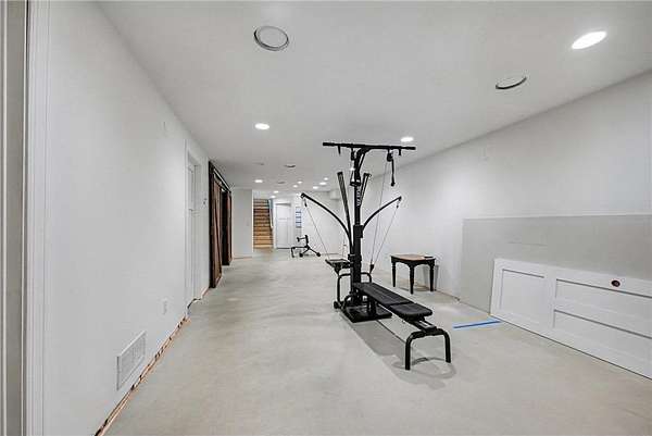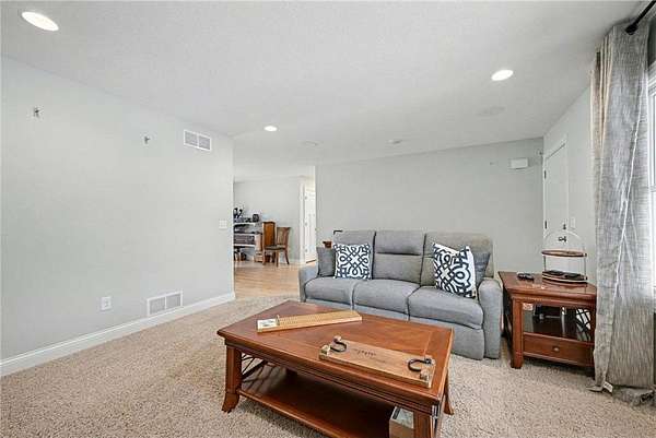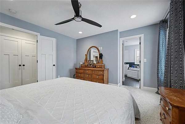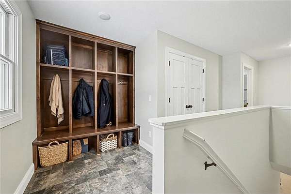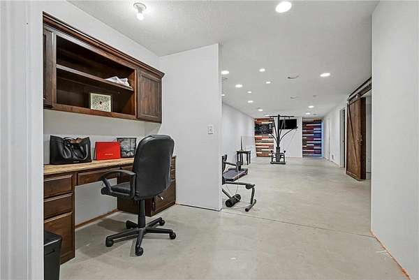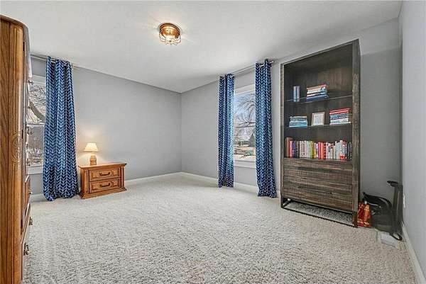 The walkout lower level offers a spacious flex area, built-in desk, theater room with barn doors, a large third bedroom, and a built-in storage bin system. Additional highlights include in-floor heat in the lower-level flooring.