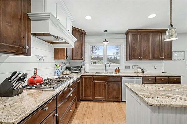 Welcome to your new sanctuary. This beautifully maintained and updated home has thoughtful finishes and features throughout. The inviting living room featuring a stone gas fireplace and hardwood floors throughout much of the main level. The kitchen offers abundant storage, stainless steel appliances, granite countertops, a center island with a second sink, built-in oven and microwave, and a cooktop with a convenient pot-filler. The mudroom includes locker-style storage to keep things organized.