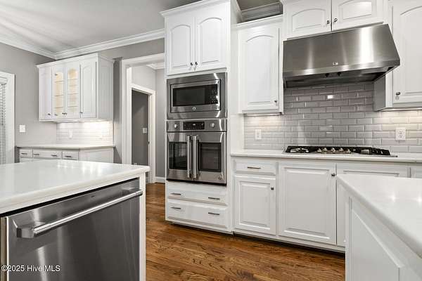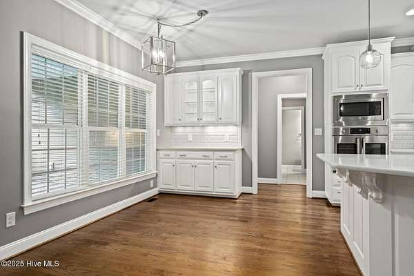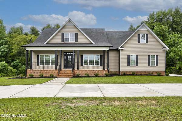 Stunning custom-built 5-bedroom, 3.5-bath home with a spacious bonus room, situated on over 5 acres in Nash County. This home boasts refinished hardwood floors throughout downstairs, fresh paint, brand-new carpet, and a formal dining room. The open kitchen features granite countertops, stainless steel appliances, and a large island-perfect for entertaining. The inviting living room offers a cozy fireplace and built-in bookcases. The expansive primary suite includes a luxurious bathroom with a custom walk-in shower. Outside, relax on the covered front porch or the large screened-in back porch, and enjoy the convenience of a double attached garage. Schedule your private showing today!