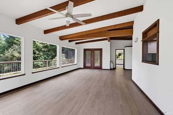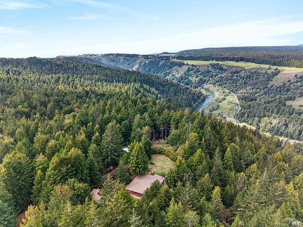 Turnkey coastal retreat set on approximately 8.5 private, redwood-studded acres offering exceptional privacy and scenic ridge views with a peek of the blue ocean. This single-level 2-bedroom, 2-bath home is thoughtfully positioned just 2 miles inland, capturing abundant sunshine and a desirable microclimate. Designed for both relaxation and entertaining, the property features an in-ground heated swimming pool surrounded by serene natural beauty. A detached guest bedroom with half bath provides flexible space for visitors or extended stays. Recent improvements make this home truly move-in ready. The expansive acreage is ideal for homesteading, gardening, animals, or enjoying your own private forest with established trails. A separate 3-room outbuilding offers excellent potential for a gym, home office, or artist studio. An additional private site is already prepared for a future yurt. Conveniently located just minutes from the charming coastal town of Elk, known for its fine dining, spas, local markets, and stunning beaches, this property offers the perfect blend of seclusion and accessibility.
