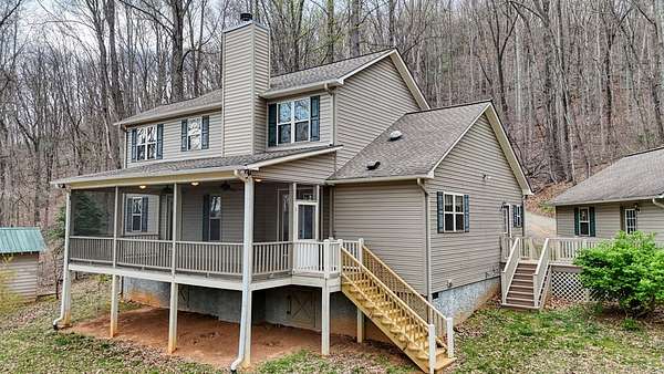 Tucked away at the end of the road on 8.09 private acres, this beautiful mountain retreat offers the perfect blend of serenity and convenience. Surrounded by nature with seasonal mountain views, this property delivers the peaceful lifestyle you've been searching for. The home features 3 bedrooms and 2.5 baths with a thoughtfully designed layout. A charming covered front porch welcomes you home and provides the perfect spot to relax and enjoy the peaceful setting. Inside, the main level boasts an inviting open-concept living room, kitchen, and dining area centered around a stunning real wood-burning fireplace—perfect for cozy evenings. A spacious screened porch extends your living space outdoors, ideal for entertaining or unwinding while taking in the natural surroundings. The main-level primary suite offers comfort and convenience, along with a functional mudroom for everyday ease. Upstairs, you'll find two additional bedrooms and a full bath, providing plenty of room for family or guests. Outside, the property continues to impress with a detached two-car garage, additional storage room, and outbuilding—offering endless possibilities for hobbies, storage, or workshop space. With over 8 acres, there's plenty of room to expand, garden, or simply enjoy the privacy. Located just a short drive to shopping, dining, and the beauty of Lake Chatuge, this property combines seclusion with accessibility. Whether you're looking for a full-time residence, vacation getaway, or investment opportunity, this home is full of potential. Call me today!