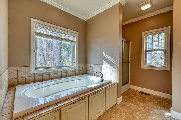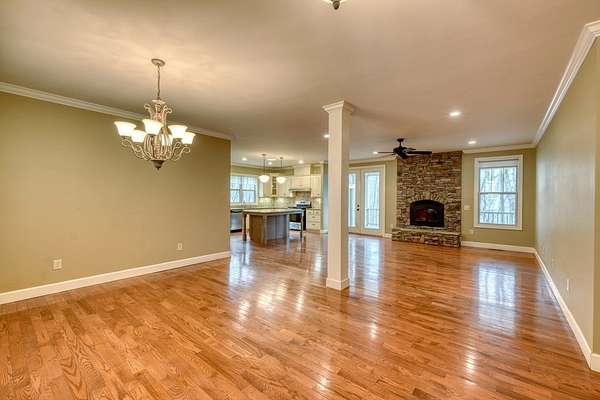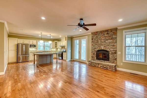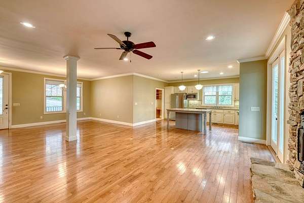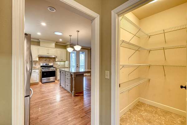 - Cathedral Ceiling(s), Ceiling Fan(s), Double Vanity, Granite Counters, Kitchen Island, Laundry On Main, Pantry, Primary On Main, Smoke Detector, Solid Surface Counters, Tile Shower/Tub, Vaulted Ceiling(s), Walk-In Closet(s), Washer/Dryer Connection, Window Treatments