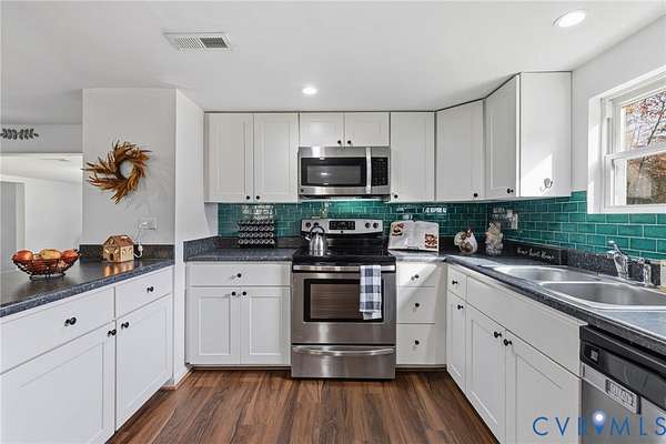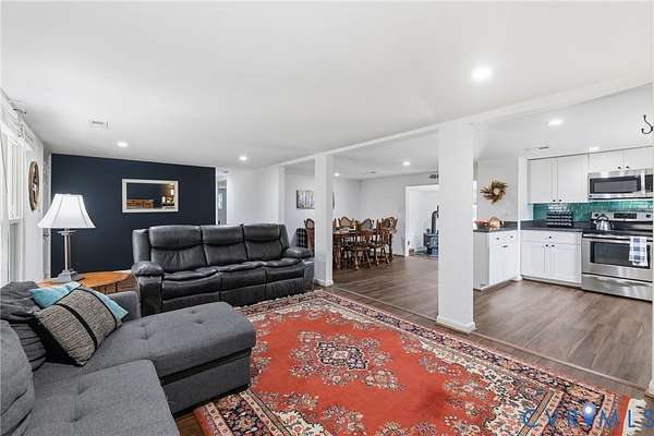 Motivated Seller. Discover peace and privacy on 2.4 acres at the end of a quiet cul-de-sac. From the welcoming front porch, enjoy sweeping views of cleared land for fun days with the family. The long circular driveway provides ample parking space for large family gatherings. Inside, the open floor plan offers 3 spacious bedrooms, 2 full baths, and a versatile flex room to suit your lifestyle-whether you need a home office, playroom, or hobby space. The sunken sitting room with its wood-burning stove creates a cozy retreat for winter evenings, while freshly painted interiors, new recessed lighting, and brand-new LVP flooring make the home feel crisp and modern. The updated kitchen shines with white cabinetry and stainless steel appliances, perfect for everyday meals or entertaining. Practical upgrades include an encapsulated crawlspace, wiring for a 50A generator, and a 220V EV-ready hookup for charging your electric vehicle and new gutters. The home has vinyl siding for a maintenance free exterlor. This move-in-ready home conveys with all appliances-including a freezer-so you can settle in right away and start enjoying the lifestyle you've been dreaming of.