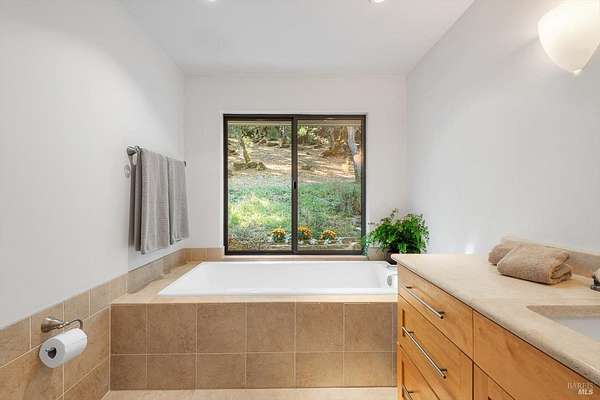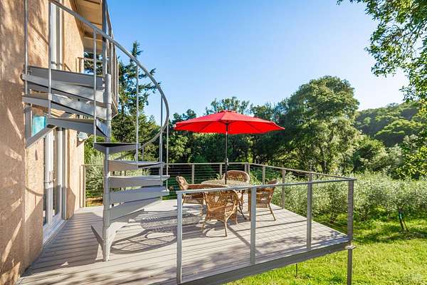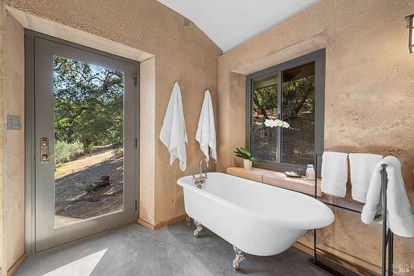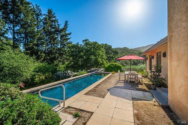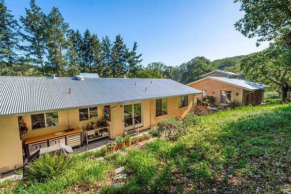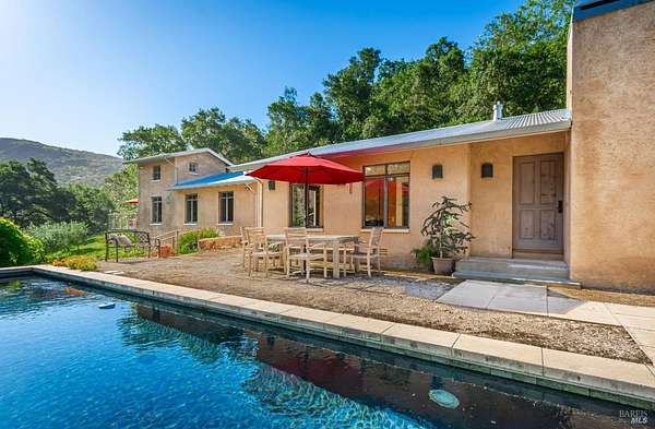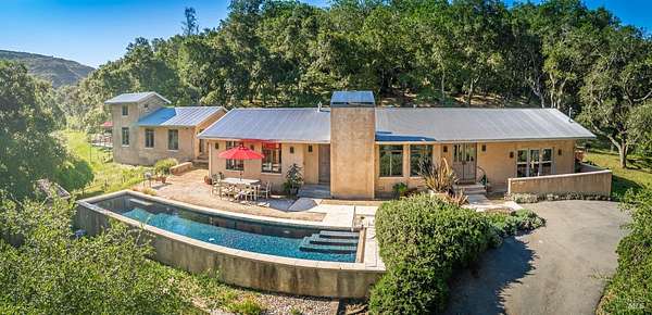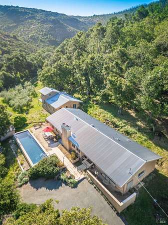 If you are looking for a unique home in a beautiful setting, this may be the place for you. The location is private and tranquil, yet only ten minutes from Napa. The house sits on a knoll above a seasonal creek, surrounded by mature oaks and madrones. Moss-covered boulders south of the house belong in a Zen garden. The original house was well-constructed and extensively improved. A striking addition was the guest house, designed and built by the renowned earth builder, David Easton. The seven acre property features a large vegetable garden, an olive orchard, a lap pool and roughly three acres that are gated and fenced. The house embodies elements of the Japanese concept of shibusa: economy of form, line, and effort, producing a timeless serenity. It must be seen to be appreciated.