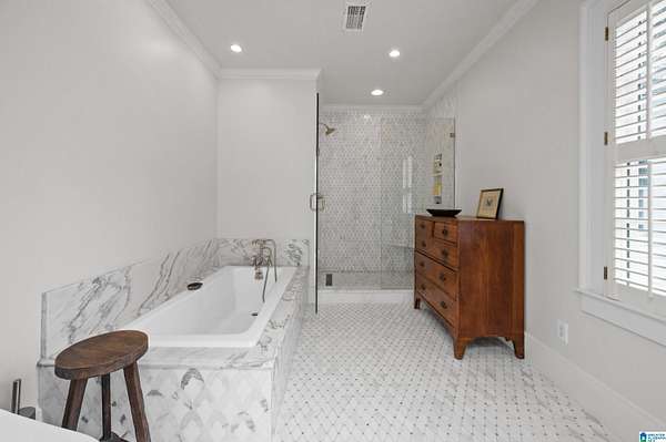 - Garden Tub, Linen Closet, Recess Lighting, Separate Vanities, Sitting Area in Master, Walk-In Closets, Wet Bar