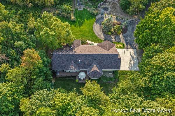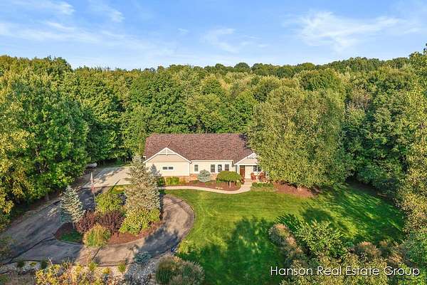 First Time Offered For Sale! Executive One Owner Custom Built Estate On a Tranquil Private Setting with Over 7 Wooded Acres, Surrounded by 200 Wooded Acres. Custom Built with Attention to Detail it Shows Like a New Home! Rich in Character, the Home Features Custom Woodwork, and Expansive Windows Framing Serene Views Throughout. The open-concept Main Level is Ideal for Entertaining, with a Chef's Kitchen Offering Granite Countertops, a Massive Island, Generously-Sized Walk-in Pantry, Ideal for all your Storage Needs.. Other Features Include Main-Floor Primary Suite with a Tiled Shower, 10'' ceilings Throughout, Sunken Great room with a Real Stone Gas Fireplace, 3 Stall Side Load Garage. Major upgrades include a new Roof in 2025, and a New Furnace in 2024. MASSIVE Lower Level Workshop in the Walkout Basement with Space For An Additional 1-2 Bedrooms and Walkout Access to the Private Backyard. A Fantastic Location. Enjoy Nearby Trails, Tranquil Views and Outdoor Living just minutes from Downtown Ada, Lowell and Rockford, Minutes Away from Top Rated Murray Lake Elementary. Offering acreage, natural beauty, and an unmatched Location & Setting, This is a Truly a Special Property.