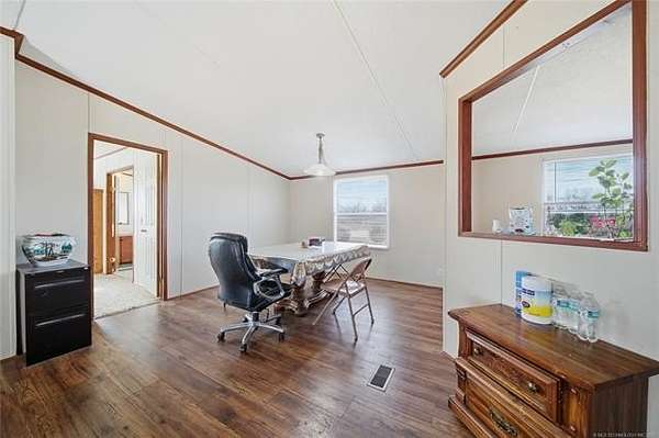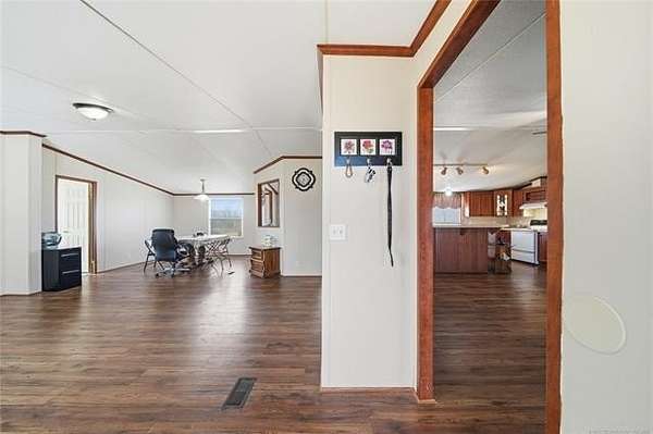 Spacious 4-bedroom, 2-bath manufactured home situated on over 24 acres of beautiful land, offering the perfect blend of privacy and convenience. The property provided ample space for farming, livestock, and jhunting. Conveniently located right off HWY 169 and just minutes from downtown Talala. Features include a well-maintained home, storm shelter, and mostly newer flooring throughout. The land is fully fenced and sectioned, ideal for animals. A brand-new detached 4+ car garage offers plenty of storage for vehicles, equipment, and toys. A great opportunity to own acreage with access to town and major highways.